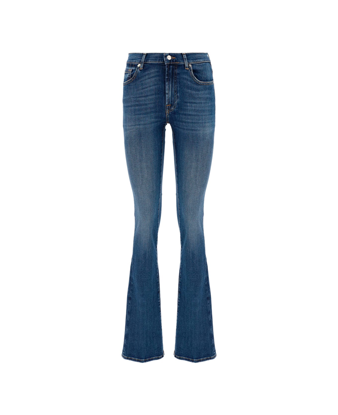 Soho jeans by 7forallmankind, featuring a zipper and button fastening, belt loops, a five pocket style, a washed out effect, a skinny fit with a boot cut hem.
