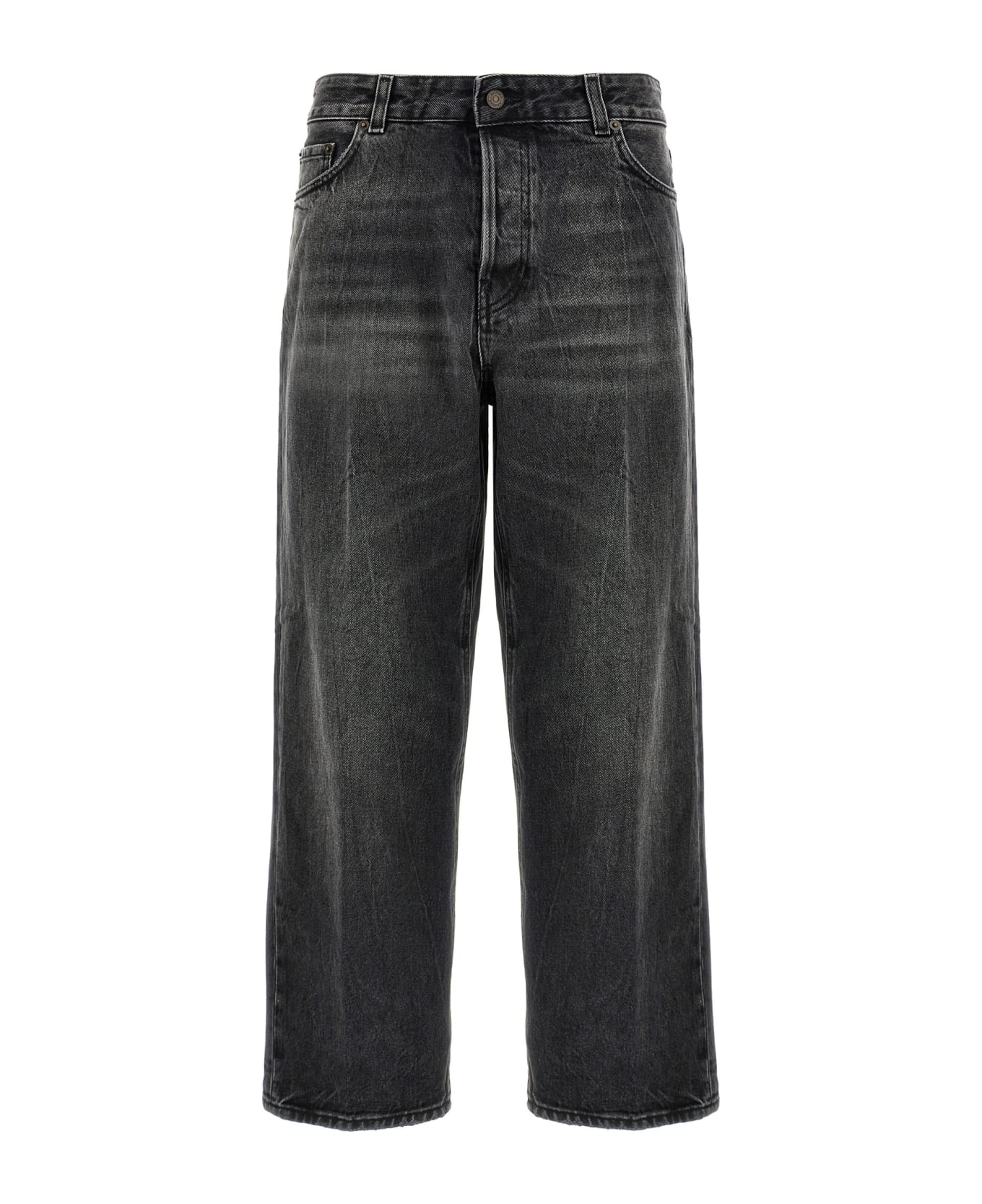 'Betty Spider Black' cotton denim jeans with button closure, five pockets, low waist style with ironed pleat.