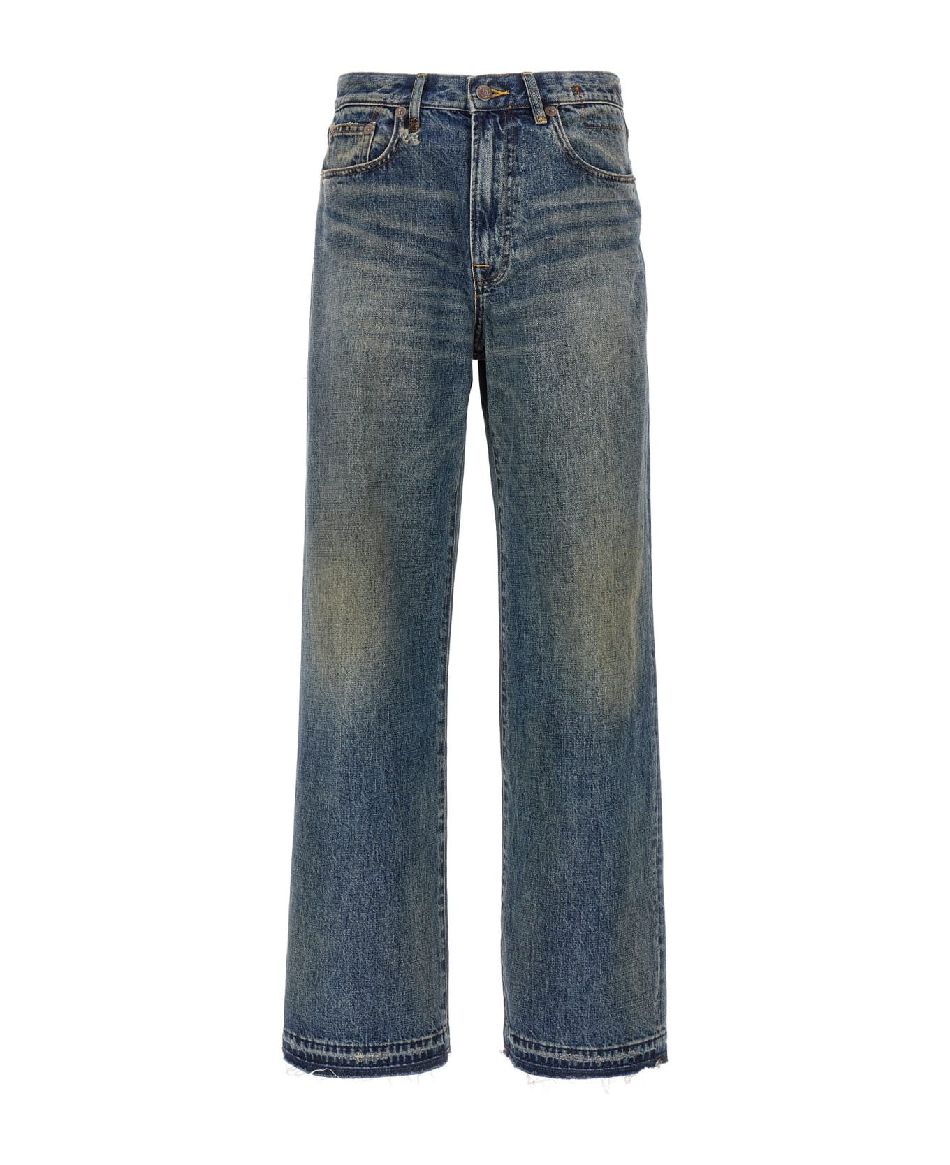 'D'arcy' cotton denim jeans with distressed details, zip and button closure, five pockets, leather logo tag, frayed hem, wide leg. Composition: 100% cotton
