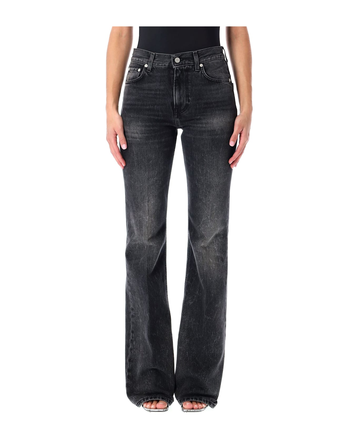 The Haikure Flora Jeans Bring An Elegant Yet Contemporary Twist To Classic Denim. Crafted In Authentic Black Wash, They Feature A High Waist And Flared Leg That Sculpts And Elongates The Silhouette. With A Traditional Five-pocket Construction, Button And Zip Fly, And Belt Loops, They Are A Timeless And Versatile Wardrobe Staple. Authentic Black Wash Denim High-rise Waist Flared Leg For A Sculpted Fit Five-pocket Design Button And Zip Fly Closure Belt Loops Alessandra Is 1,75 M And Wears Size 27