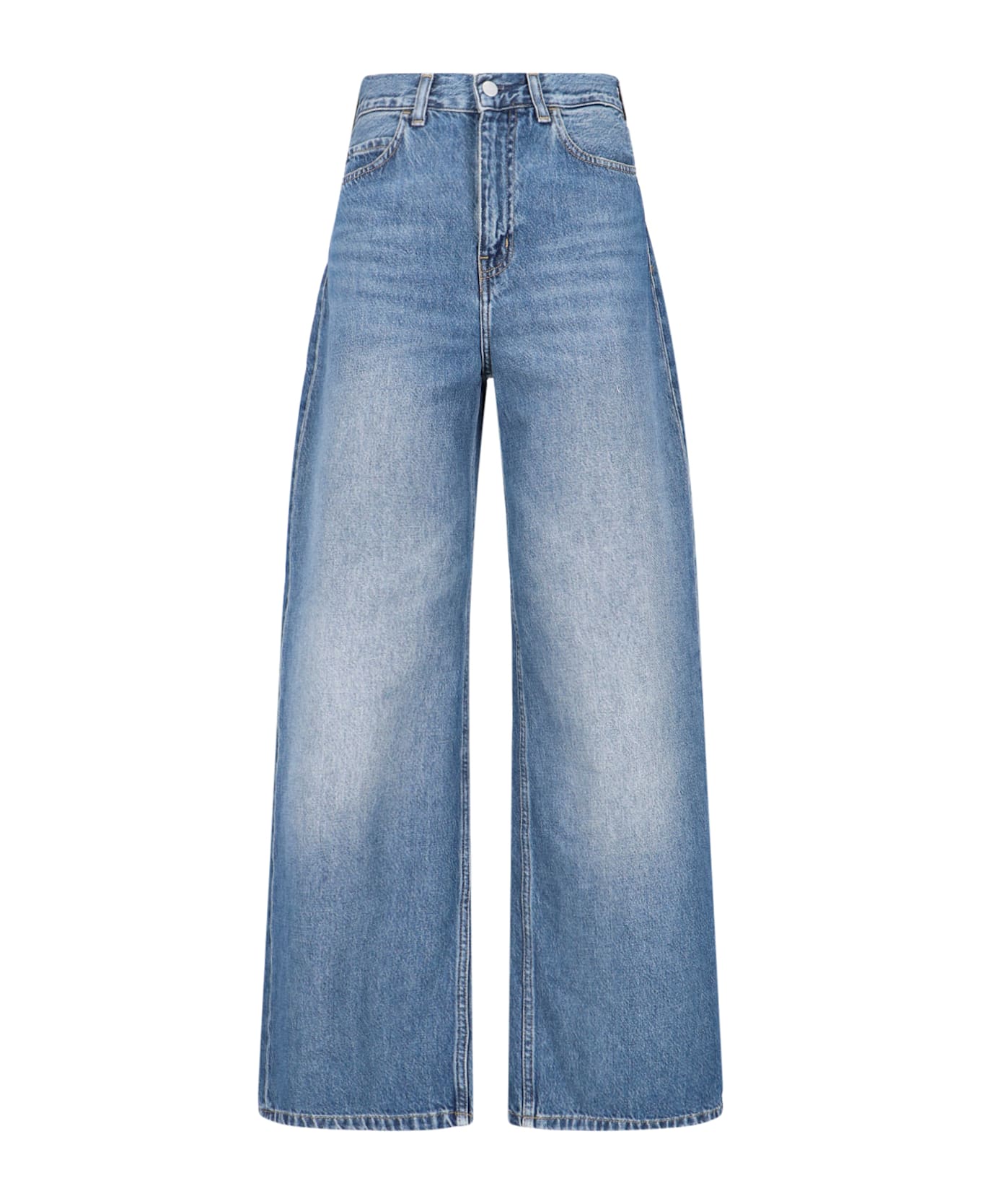Carhartt Wip 'Jane' jeans in light blue organic denim with high turn, belt loops, button and zip closure, five pockets, back logo patch, flared leg. Composition: 100% Organic Cotton