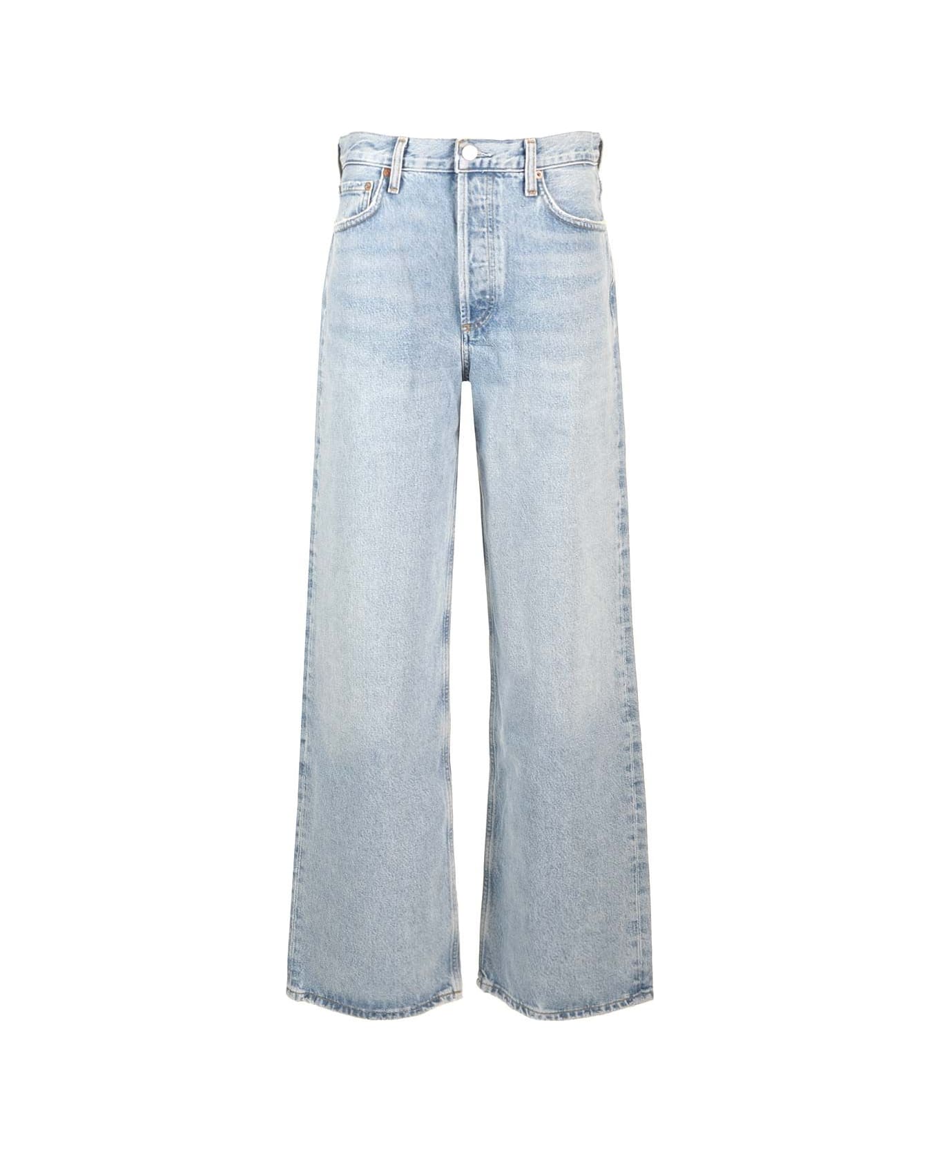 "Low Slung Baggy" jeans from Agolde with an ultra-relaxed silhouette, low waist on the hips and straight leg. Made of pale blue regenerative cotton.
