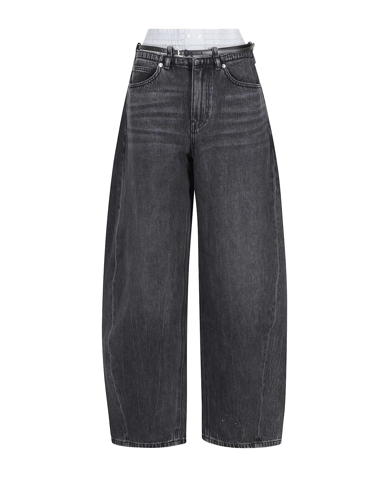 Category: Jeans Item: Prestyle Jeans Blow Up Brand: Alexander Wang Color: Gray Pockets: Five-pocket model Details: Double pants effect, Loops and waist strap Closure: With zipper and button SIZE AND FIT Fit: Boyfriend Leg: Tapered