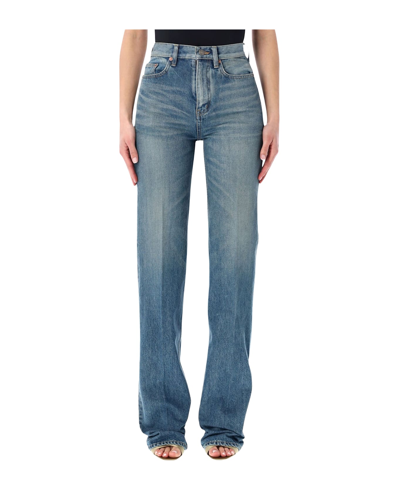 The Saint Laurent Yves Flared Jeans In Certified Cotton Combine Timeless Denim Style With A Flattering High-waisted Fit. Featuring A Flared Leg And Five-pocket Design, These Jeans Offer Comfort And Sophistication. A Zip Fly With Button Closure And Embossed Saint Laurent Paris Leather Jacron On The Waistband Complete The Look, Making Them Perfect For Chic Casual And Elevated Outfits. Made From Certified Cotton High-waisted Fit With Flared Leg Five-pocket Button Closure With Zip Fly Waistband With Belt Loops And Embossed Saint Laurent Paris Leather Jacron Alessandra Is 1,75 M And Wears Size 26