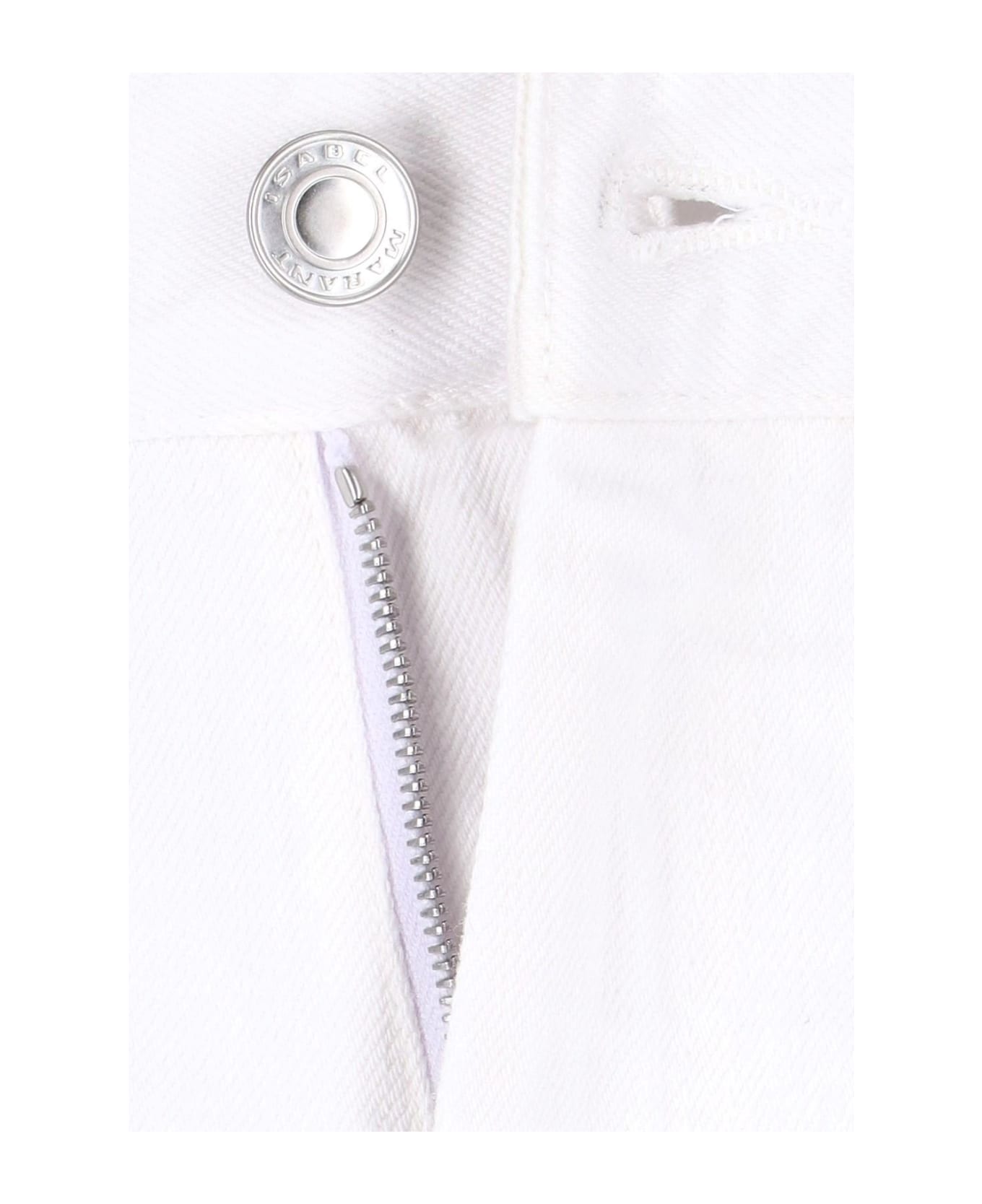 Isabel Marant Slim Fit Jeans in white denim, belt loops, zip and button fly, five pocket design, contrast stitching detail on front, straight hem.
