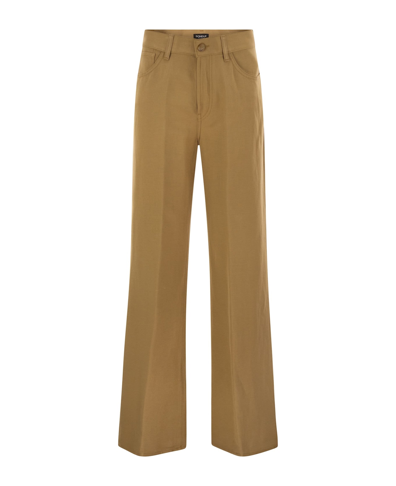 The Amber five-pocket trousers feature a wide leg fit, a regular waist and a wide leg. - Ironed crease - Dondup logo - Made in Italy DESIGNER ID: DP619IF0041DXXXDD 397