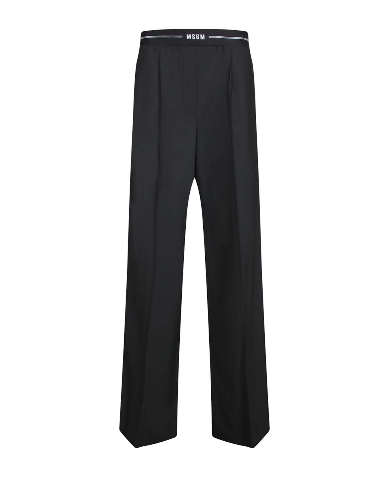 Explore casual elegance with MSGM's black trousers featuring a comfortable elastic logo waistband and a clean, modern cut that offers versatility for any occasion.