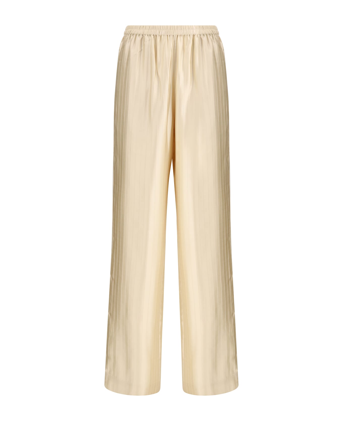 The kadala trousers by loulou de saison are crafted in smooth satin with a medium-weight, non-stretch hand. the straight-leg silhouette and mid-rise waist create a balanced, understated elegance, while the elasticated waistband ensures comfort and ease without disrupting the fluid drape of the fabric. designed with a standard fit, they are a refined everyday piece to wear from day to evening with effortless sophistication.