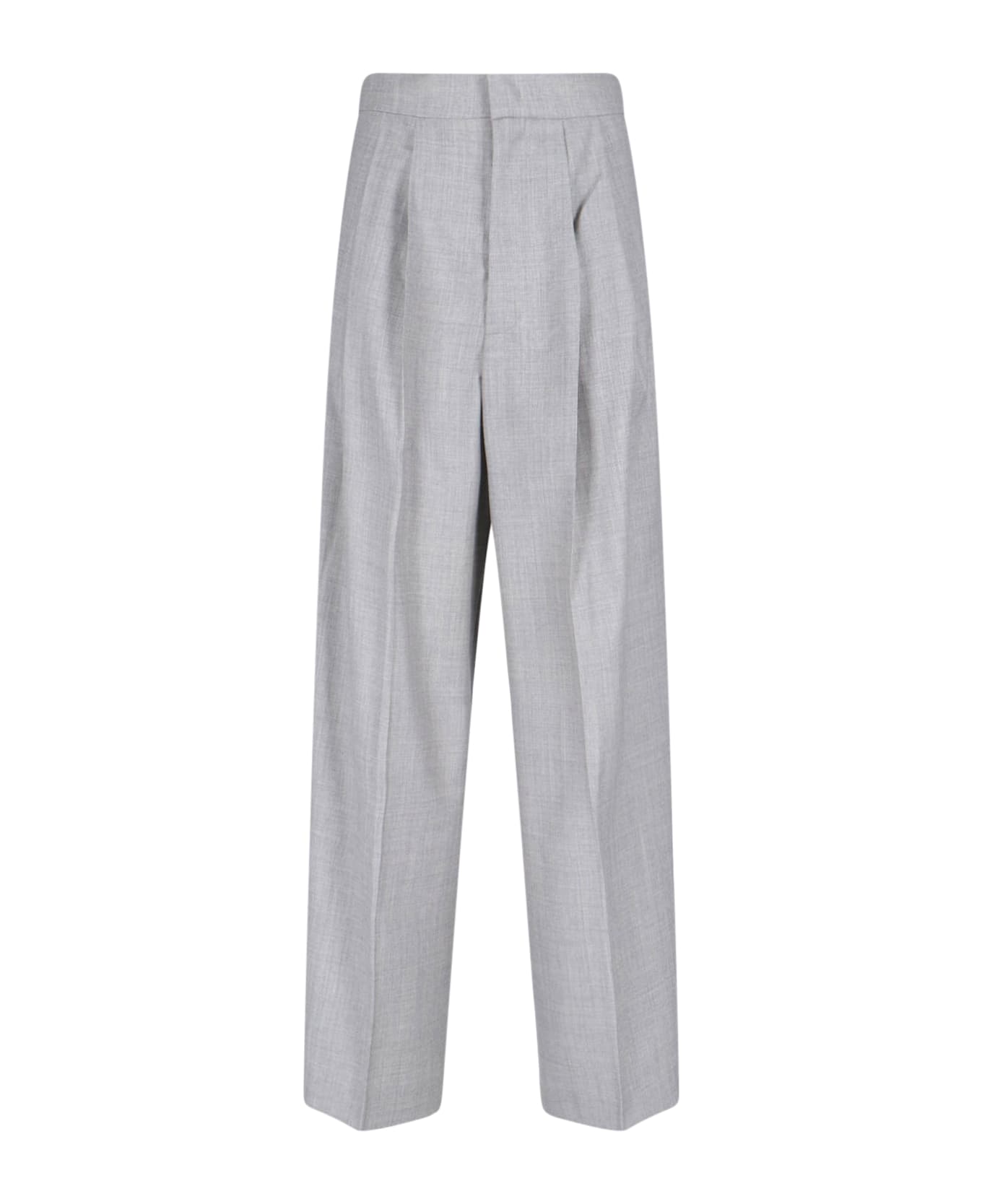 Sa Su Phi wide pants in grey wool with high waist, hook and zip closure, front pin tucks, two side pockets, wide leg.