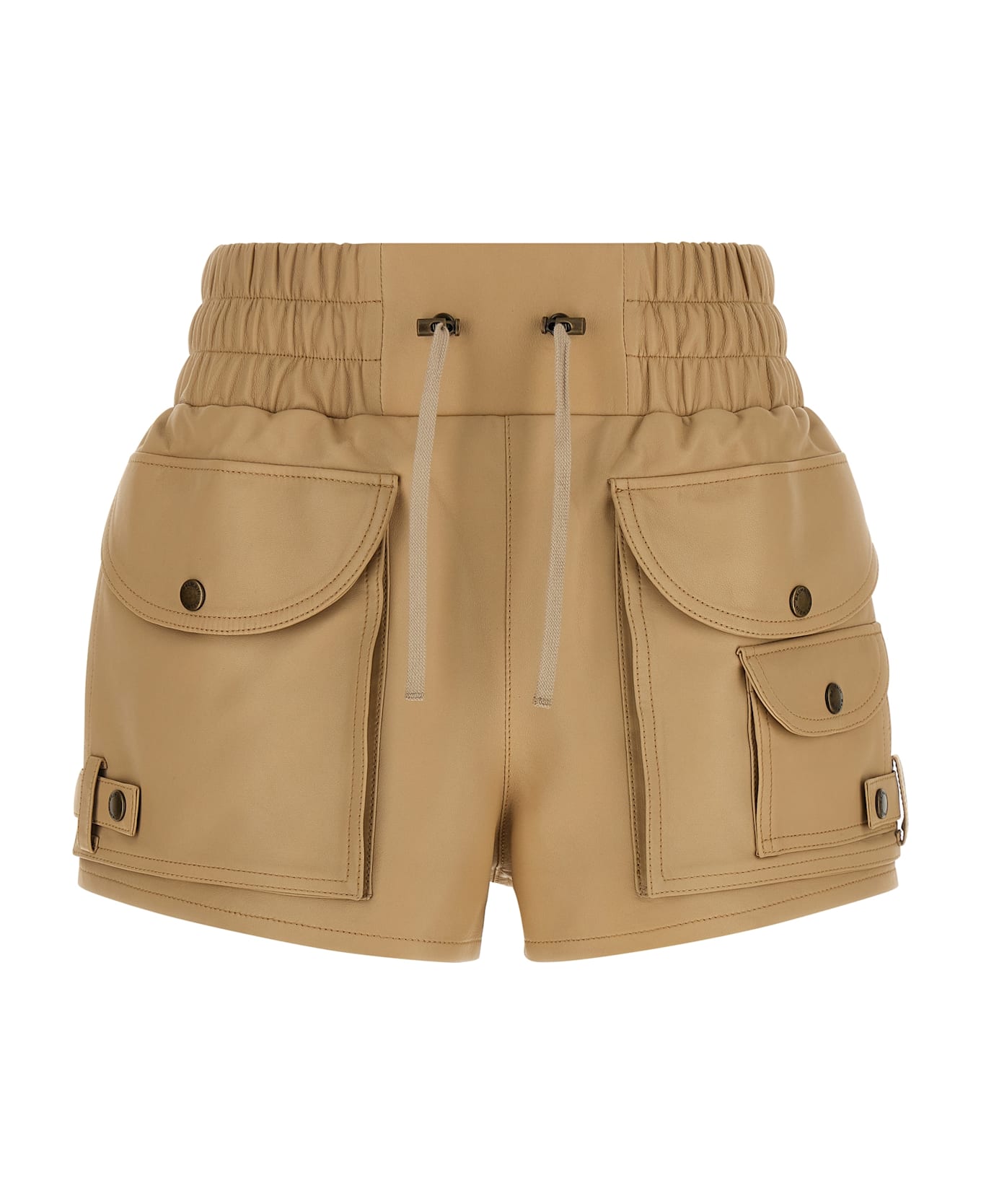 Nappa shorts, cargo style with pockets, drawstring elastic waistband, lining.