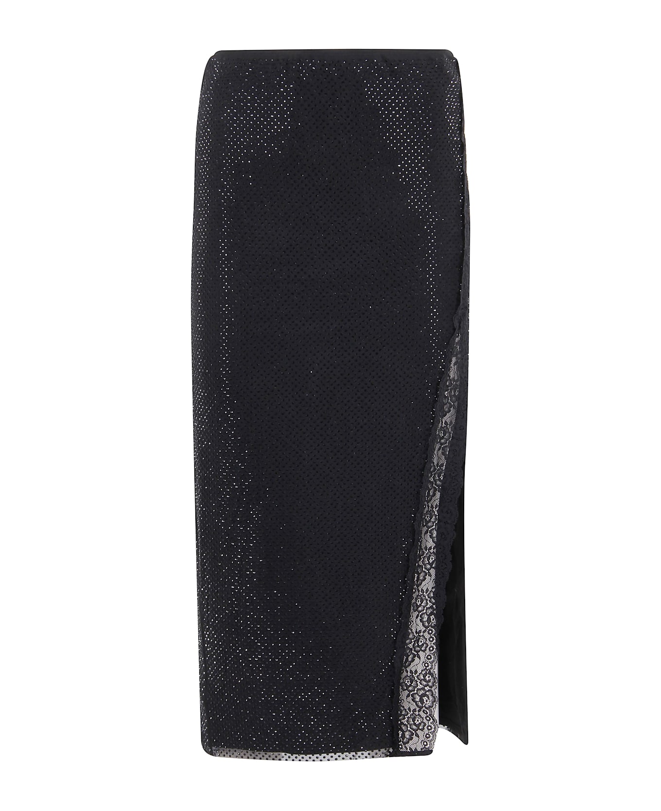Rhinestone Midi Skirt - Self-Portrait - Black color - All-over rhinestone fabric - Elasticized waistband - Side slit with lace insert