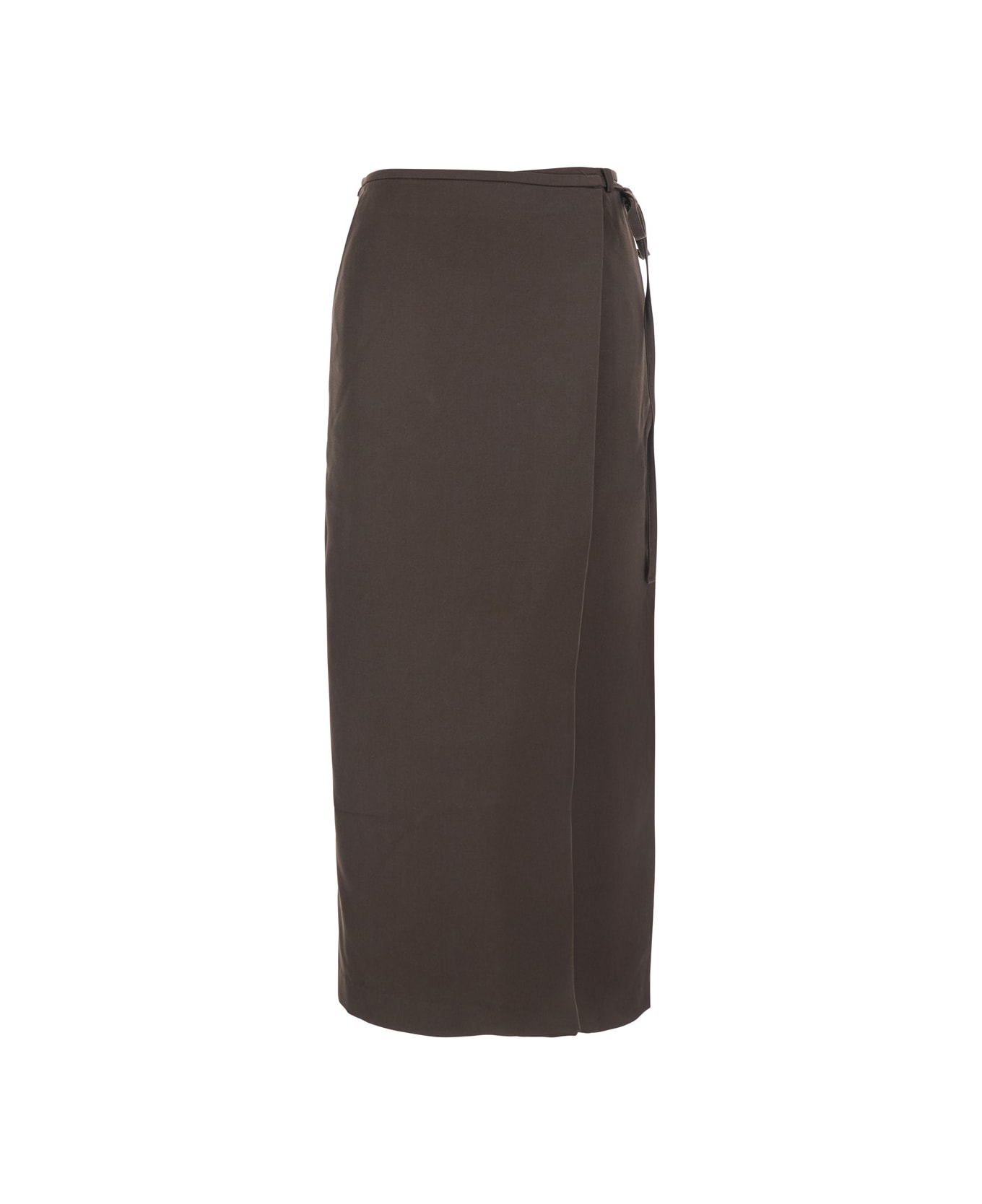 Skirt Brown Asymmetrical design Back zip closure Side tie closure Back slit Fabric Regular fit