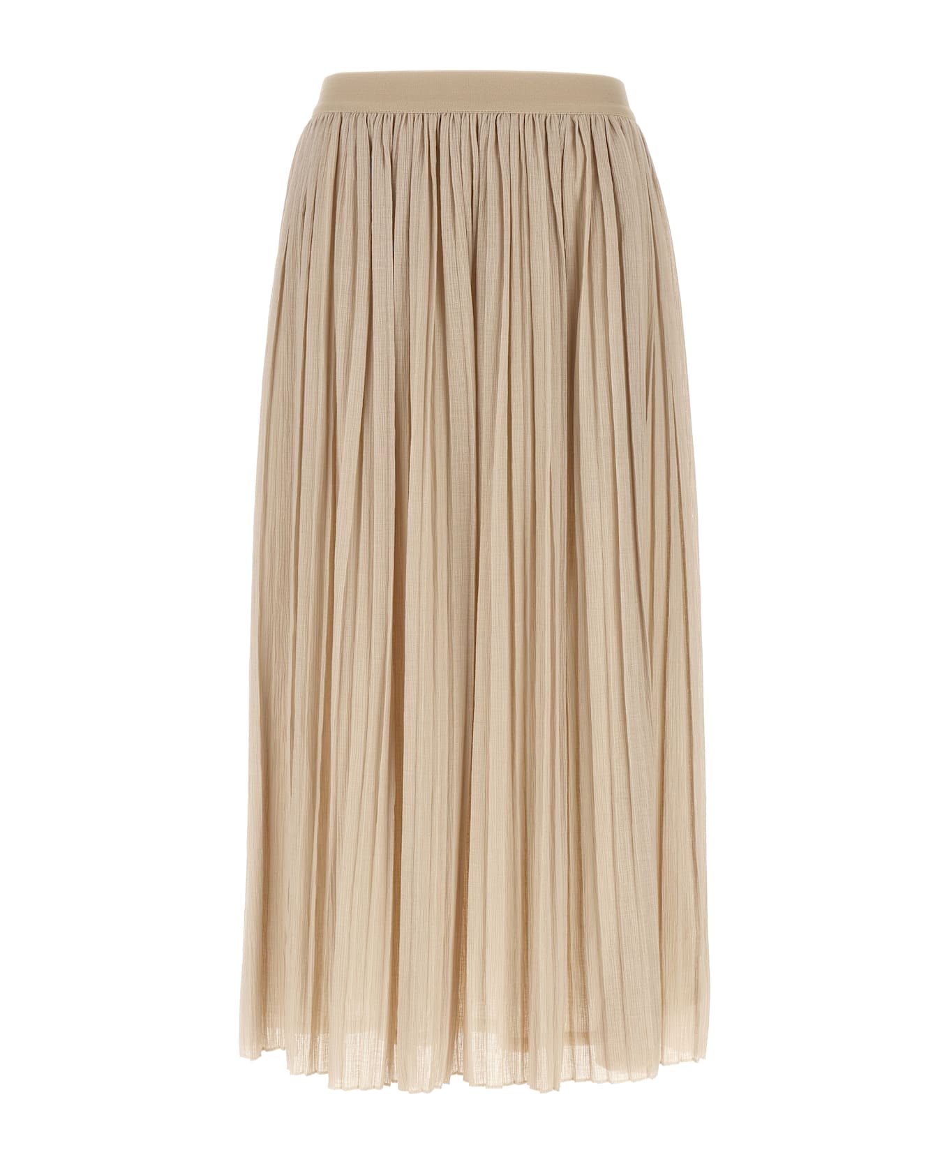 Long 'Cral' creponne jersey skirt, flared with pleated pattern, elastic waistband, lining.