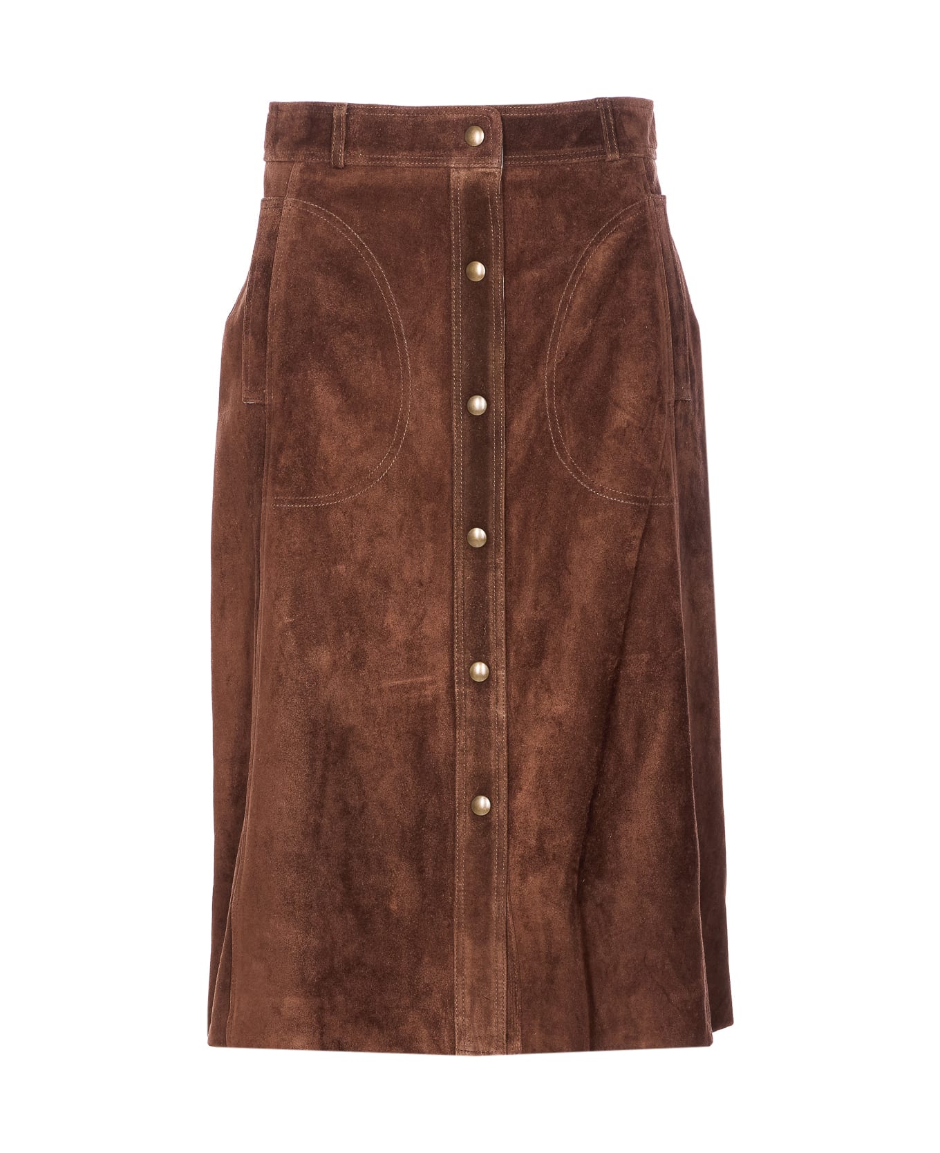 Arma brown Ellen skirt, buttons closure on the front, lateral pockets, midi model, suede