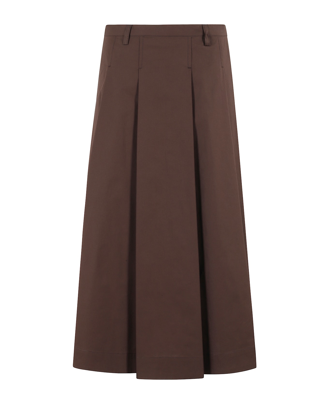 Skirt - Seventy - Brown color - Stretch poplin fabric - Waistband with belt loops - Pleated design - Back zipper closure - Regular fit