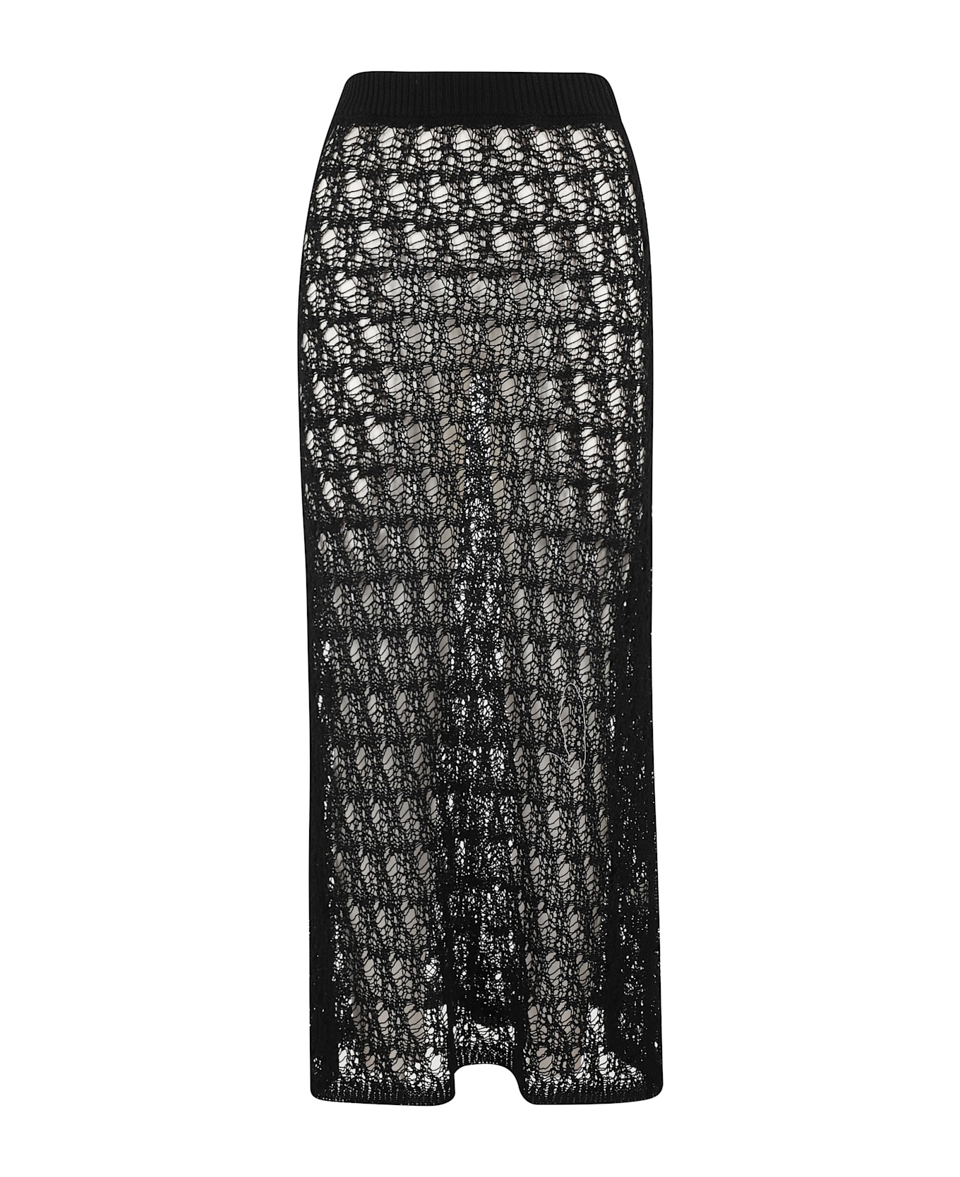 Punk Lace Skirt - Roberto Collina - Black color - Lace effect knit fabric - Removable shorts - Elasticized waistband - Long flared pattern - Regular fit