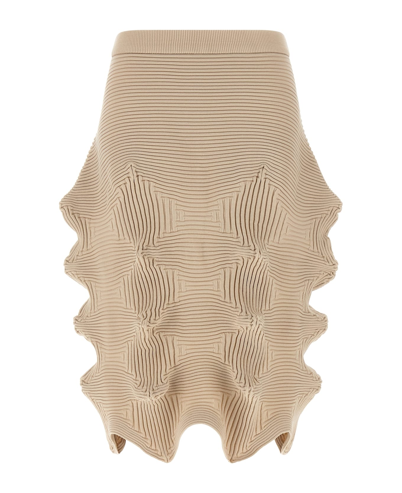 'Linkage' knitted skirt with ribbed elastic weave structure, wide model with elastic waistband.