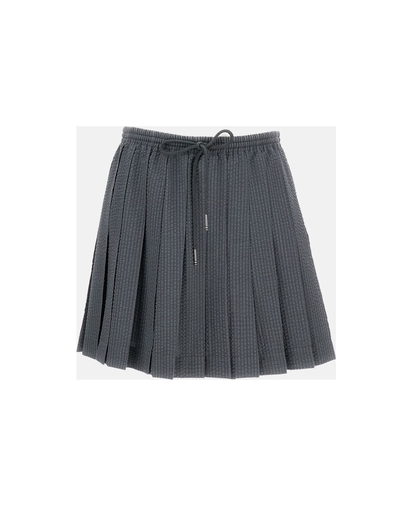 Wool seersucker-effect skirt Elasticated drawstring waist Mini model, above-the-knee length Unlined Color: grey Made in Italy Composition: 100% Wool