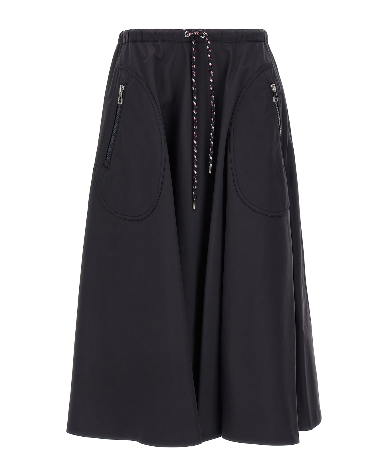 Full skirt in cotton and nylon blend, flared silhouette, back felt logo patch, drawstring elastic waistband, pockets, unlined.