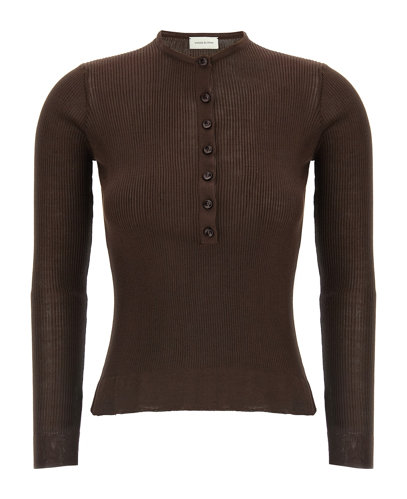 20 ribbed silk sweater with seraph style, crew neck with button closure and long sleeves. Composition: 100% silk