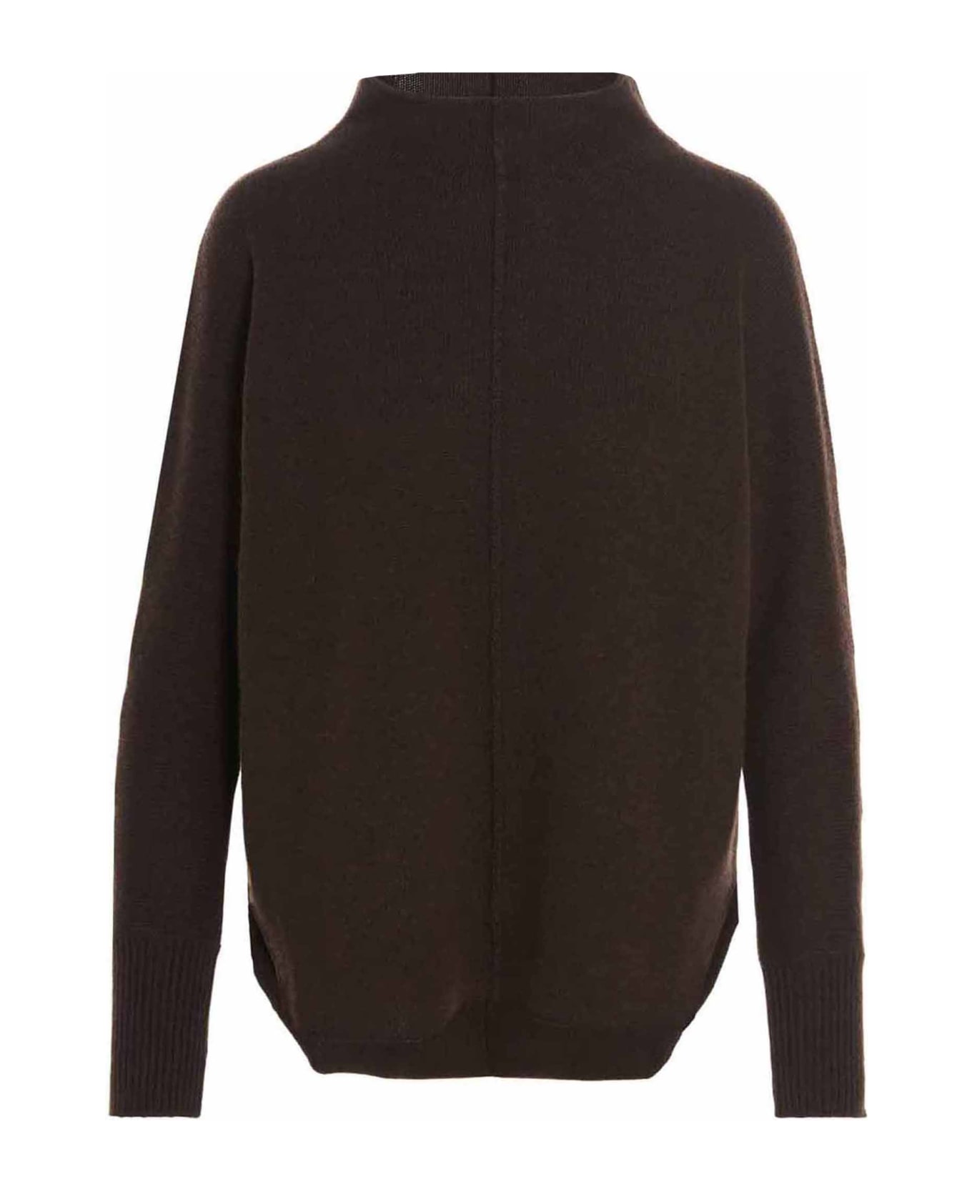 Cashmere turtleneck sweater with long cuffed sleeves, a central stitching detail, slightly longer at the back.