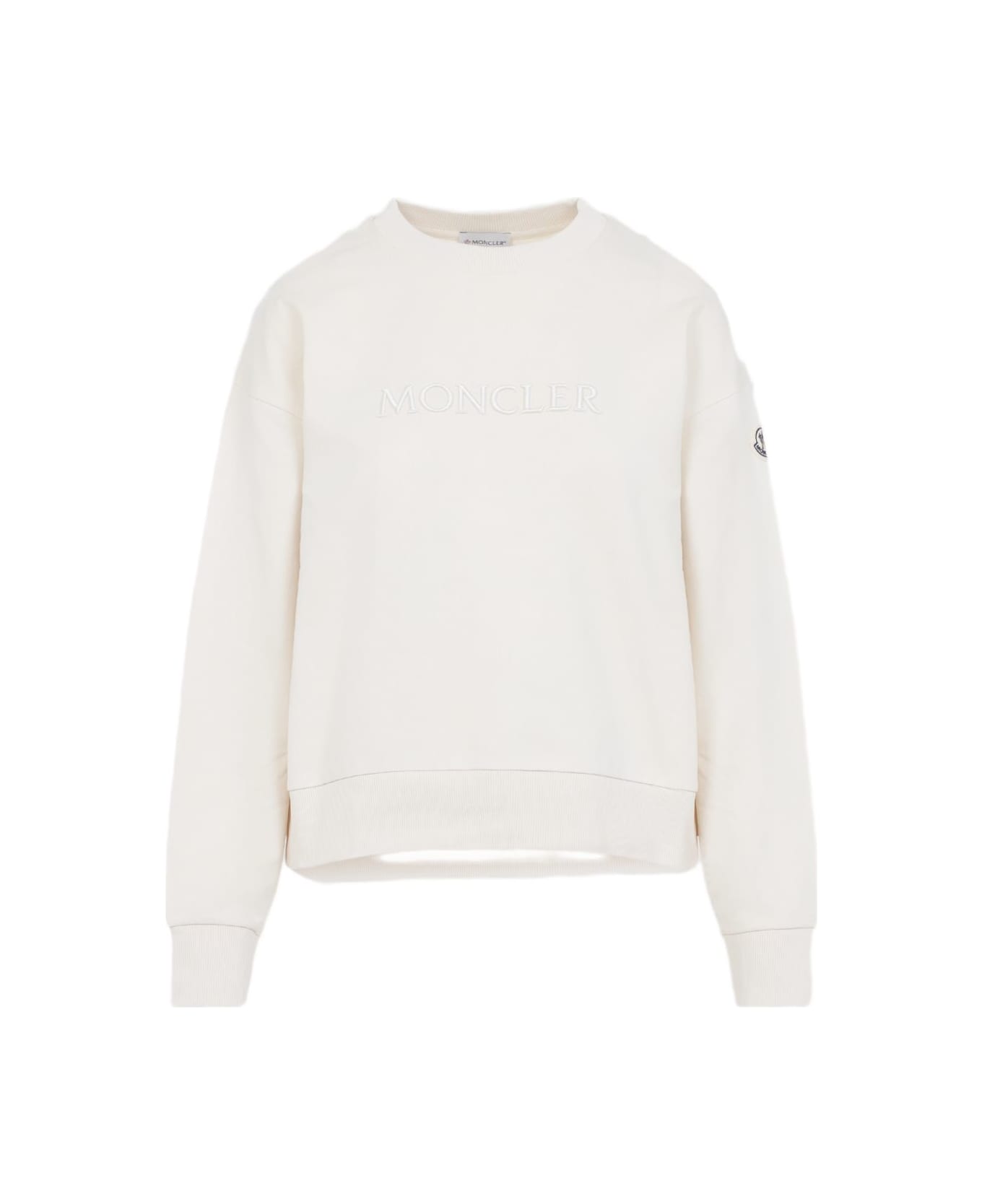 ecru embroidered logo round neck long sleeves ribbed hem