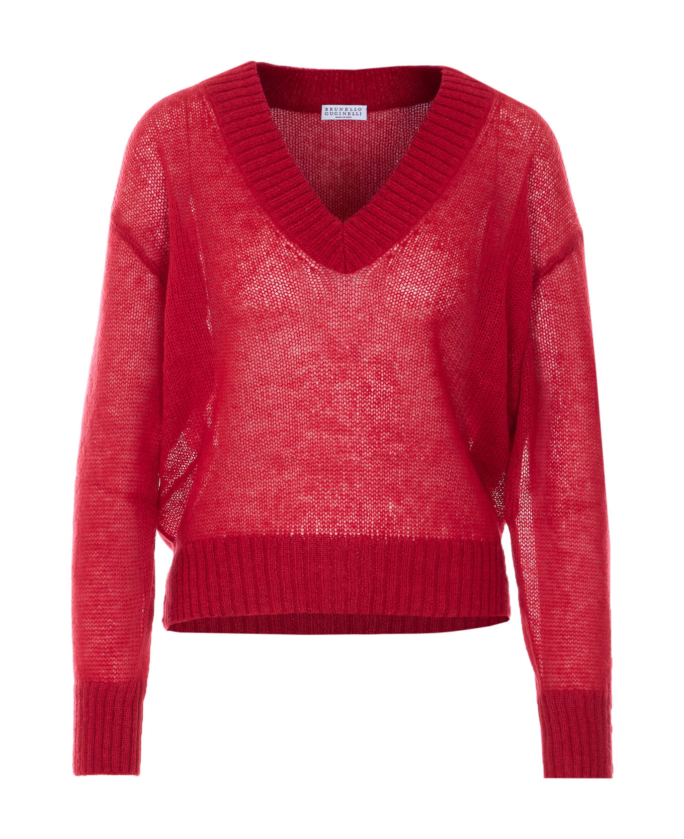 Brunello Cucinelli red sweater, V-neck, long sleeves, Monile logo