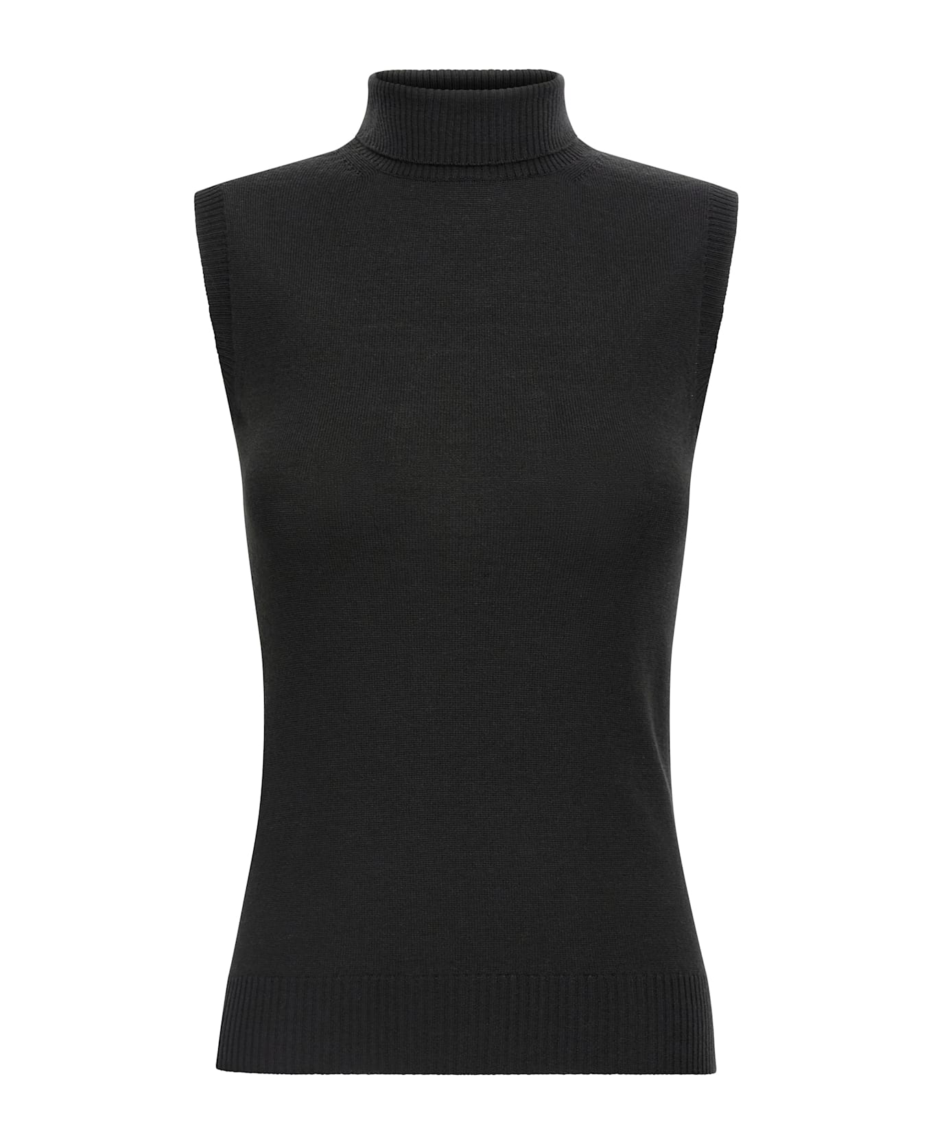 'Vertigo' breast in pure wool yarn thin, high neck, sleeveless.