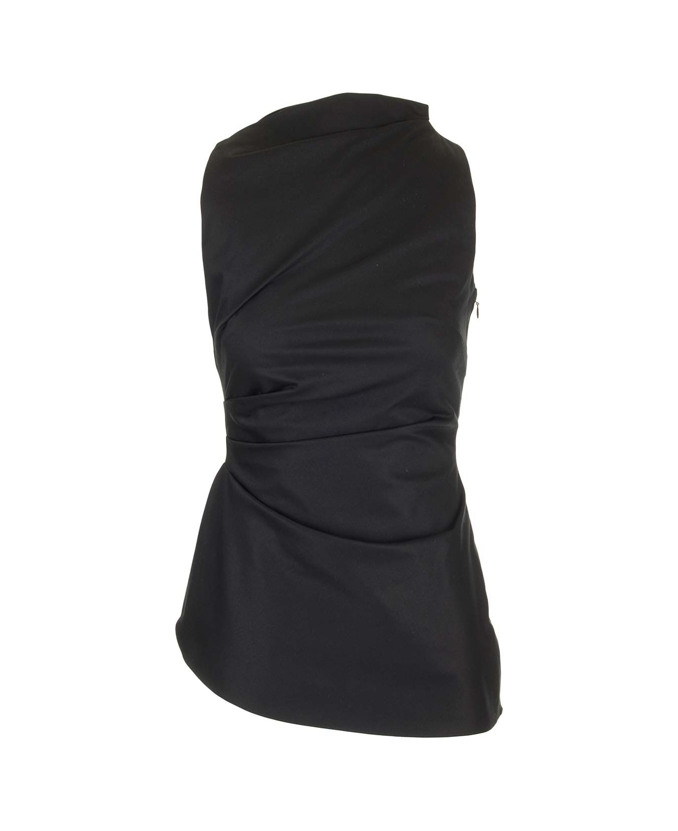 Asymmetrical sleeveless top in black stretch cotton twill with gathered details and side zip closure from Alexander McQueen. Composition: COTTON MIX