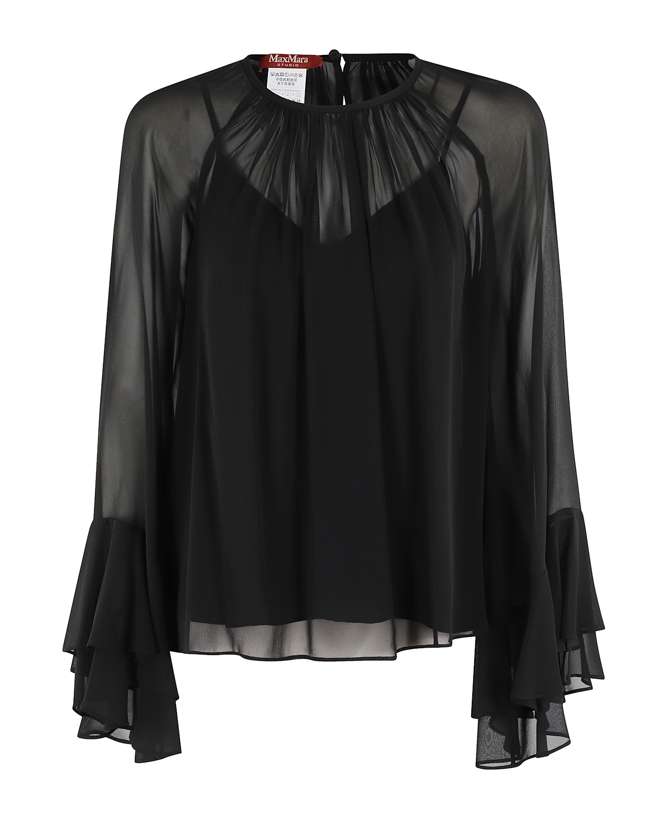 Zeo blouse - Max Mara Studio - color black - silk georgette - round neckline - long sleeves with ruffle - ruffle at neck - matching petticoat - drop back closure