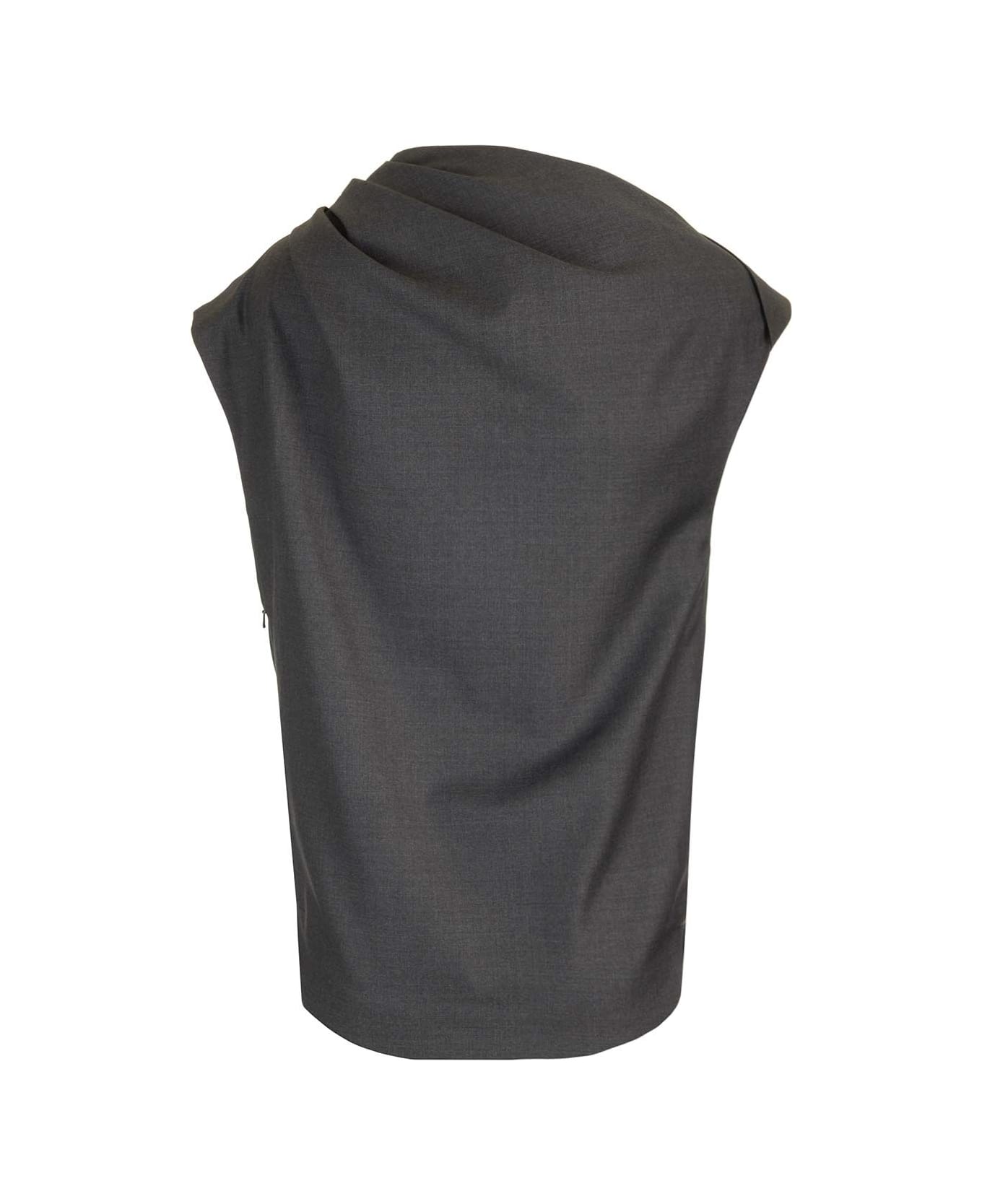 Draped blouse made of charcoal wool canvas from Lou Lou Studio, with hidden zip on the side, rounded hem.