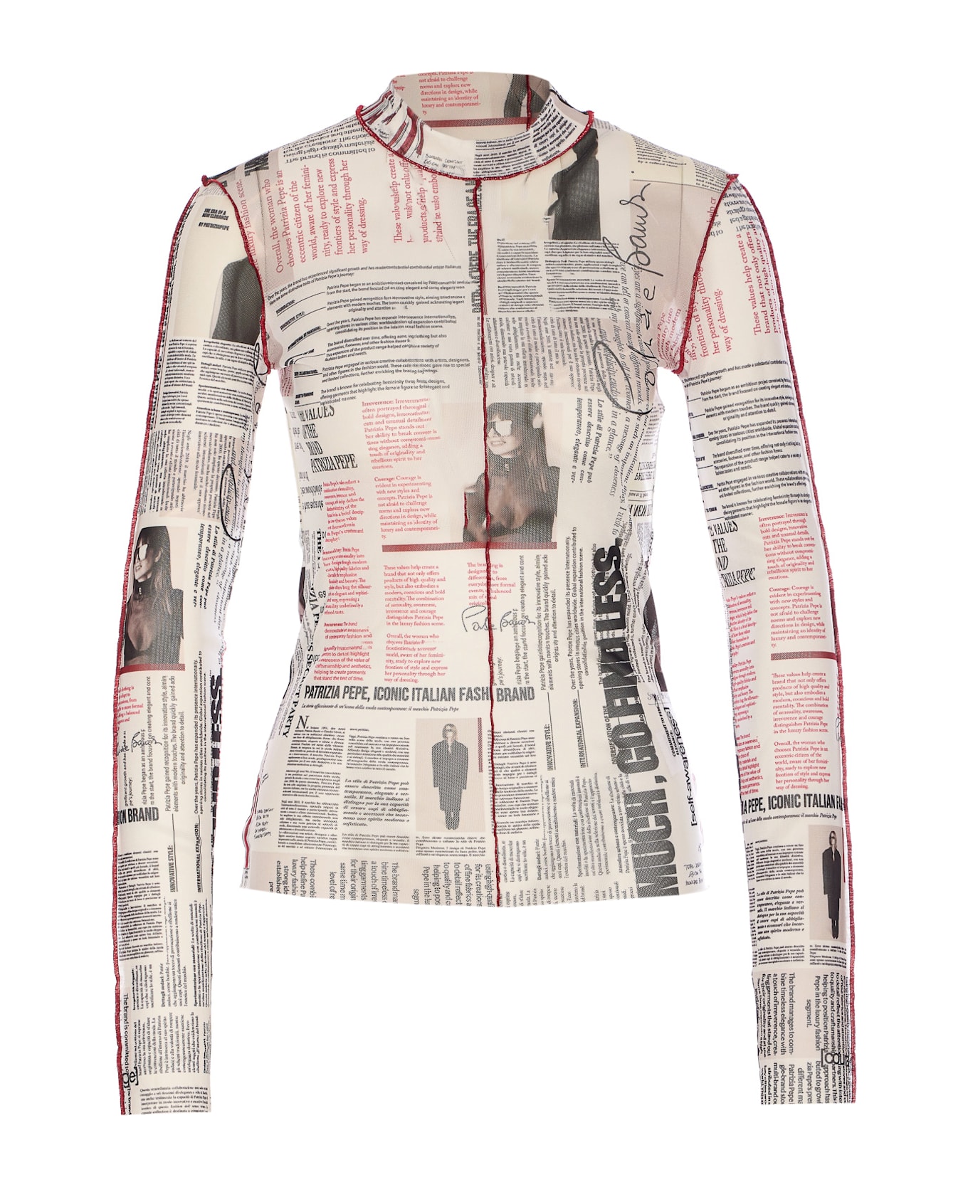 Patrizia Pepe transparent top, crewneck, long sleeves, printed