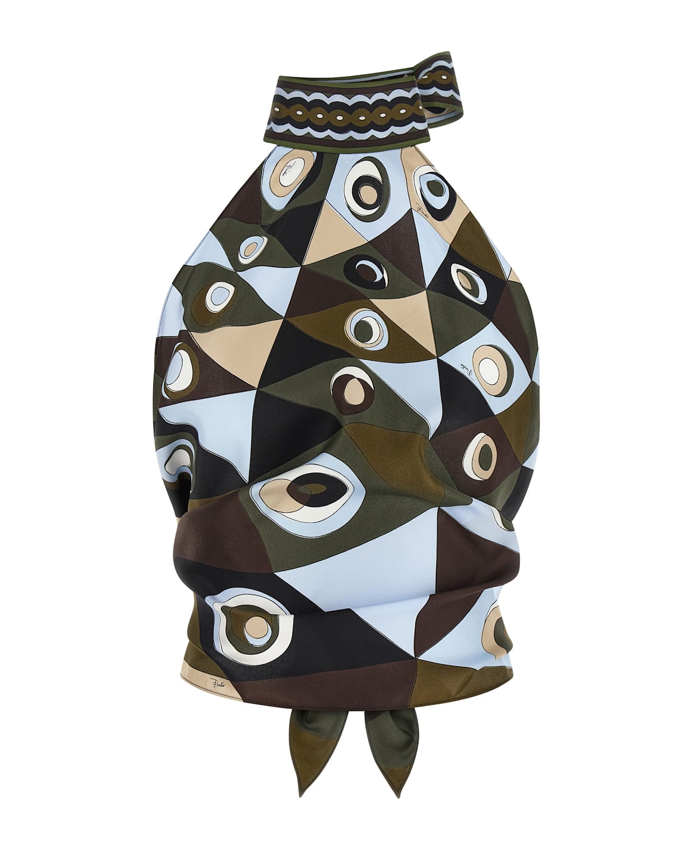All-over 'Occhi' print silk twill top, high neck with sash to tie at the back, bare back. This product, like many other Pucci items, is made with an all-over print that falls differently on each garment The product shipped may differ from the one in the picture.