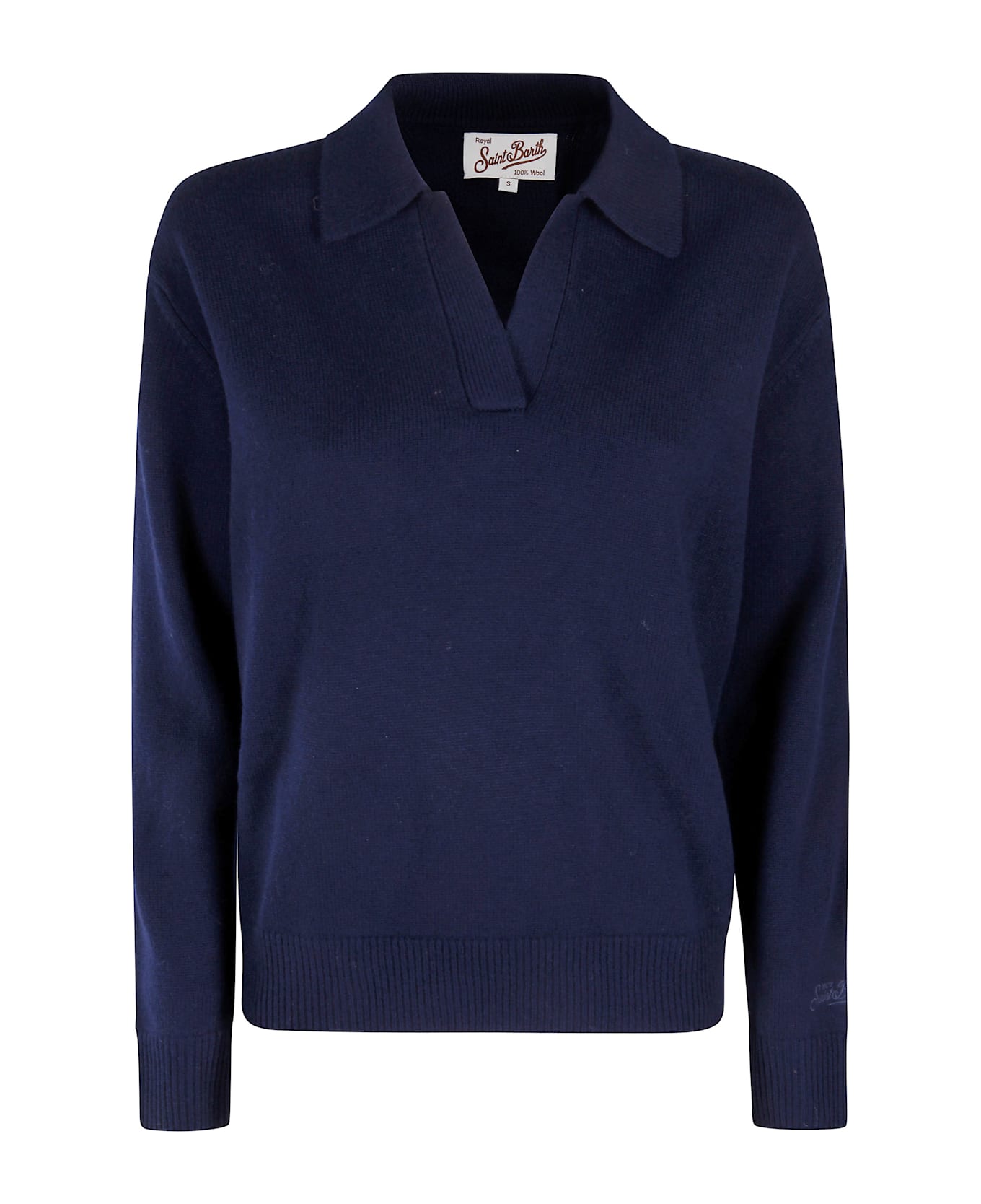 Sweater - Mc2 Saint Barth - Polo model - Night blue color - Long sleeves - V-neckline