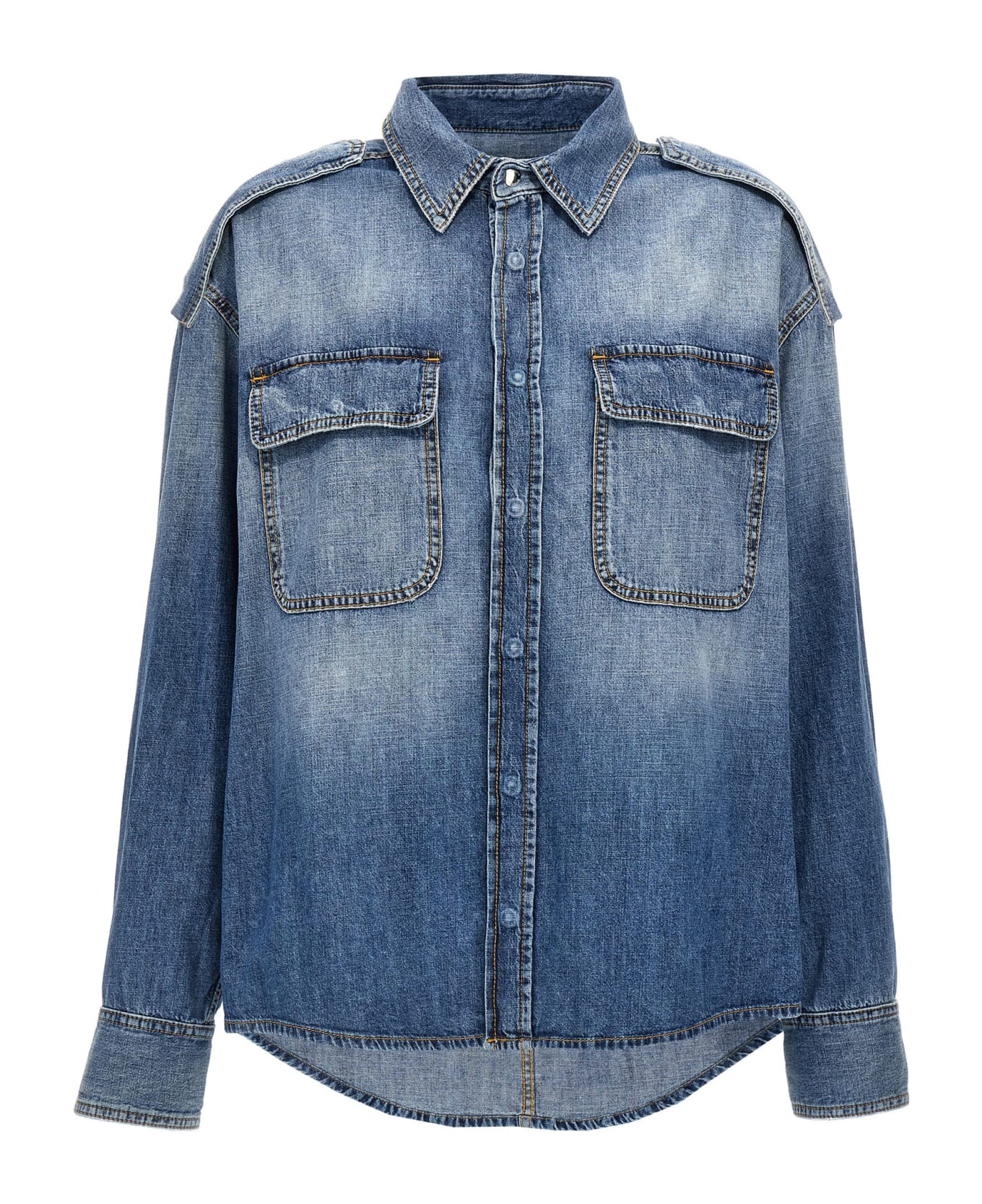 'Alfio' cotton denim shirt with front pockets, button closure, long cuffed sleeves.