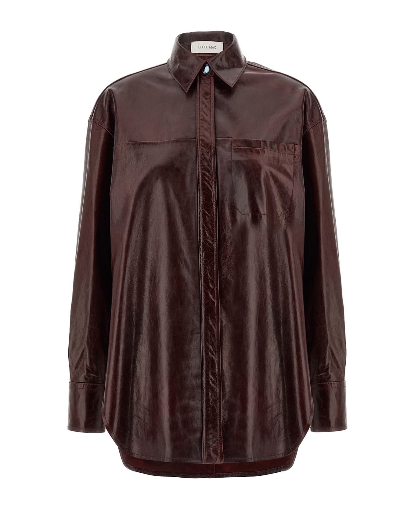 'Borel' shiny nappa leather shirt with front hidden snap button closure, pockets, long sleeves with cuffs and dropped shoulders, side slits.