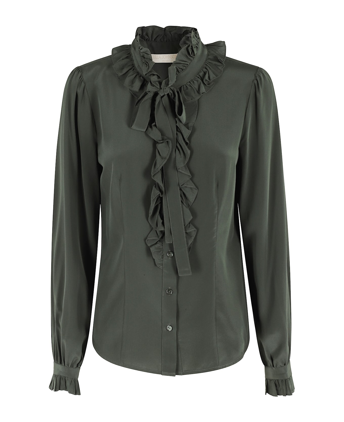 Catroux shirt -Ulla Johnson -Cypress color -Collar with ruffles and ribbon -Center button closure -Long sleeve