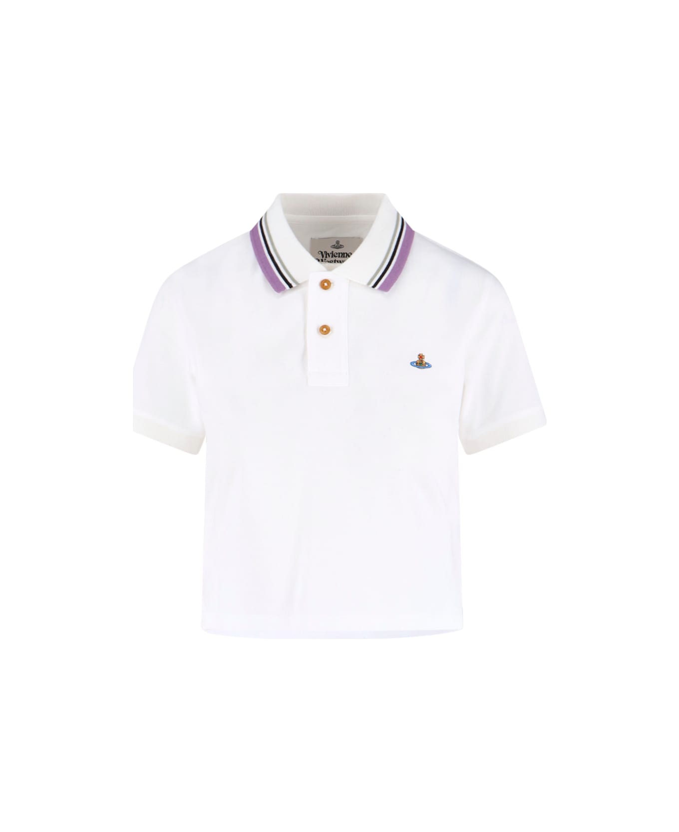 Vivienne Westwood Classic polo shirt in white cotton with classic collar, multicolor striped pattern, button closure, multicolor 'Orb' logo embroidery on the chest, straight hem. Composition: 100% Cotton