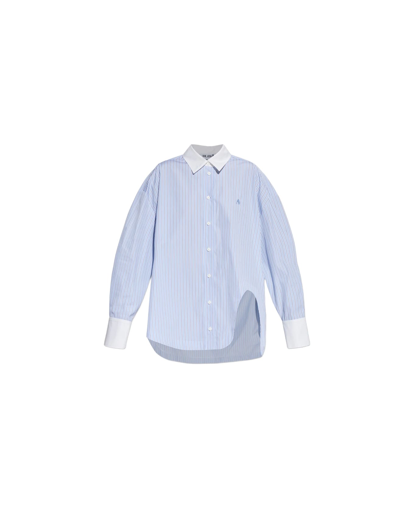 light blue striped embroidered detail button fastening classic collar long sleeves