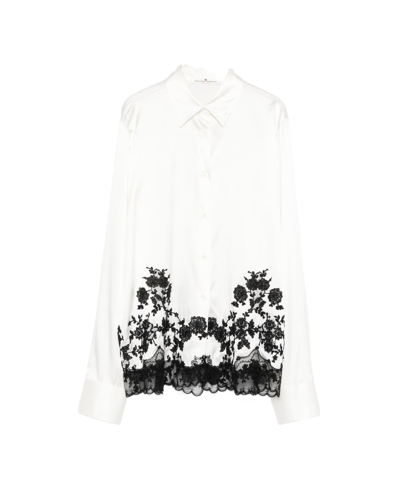 white floral embroidery lace trim long sleeves button fastening classic collar