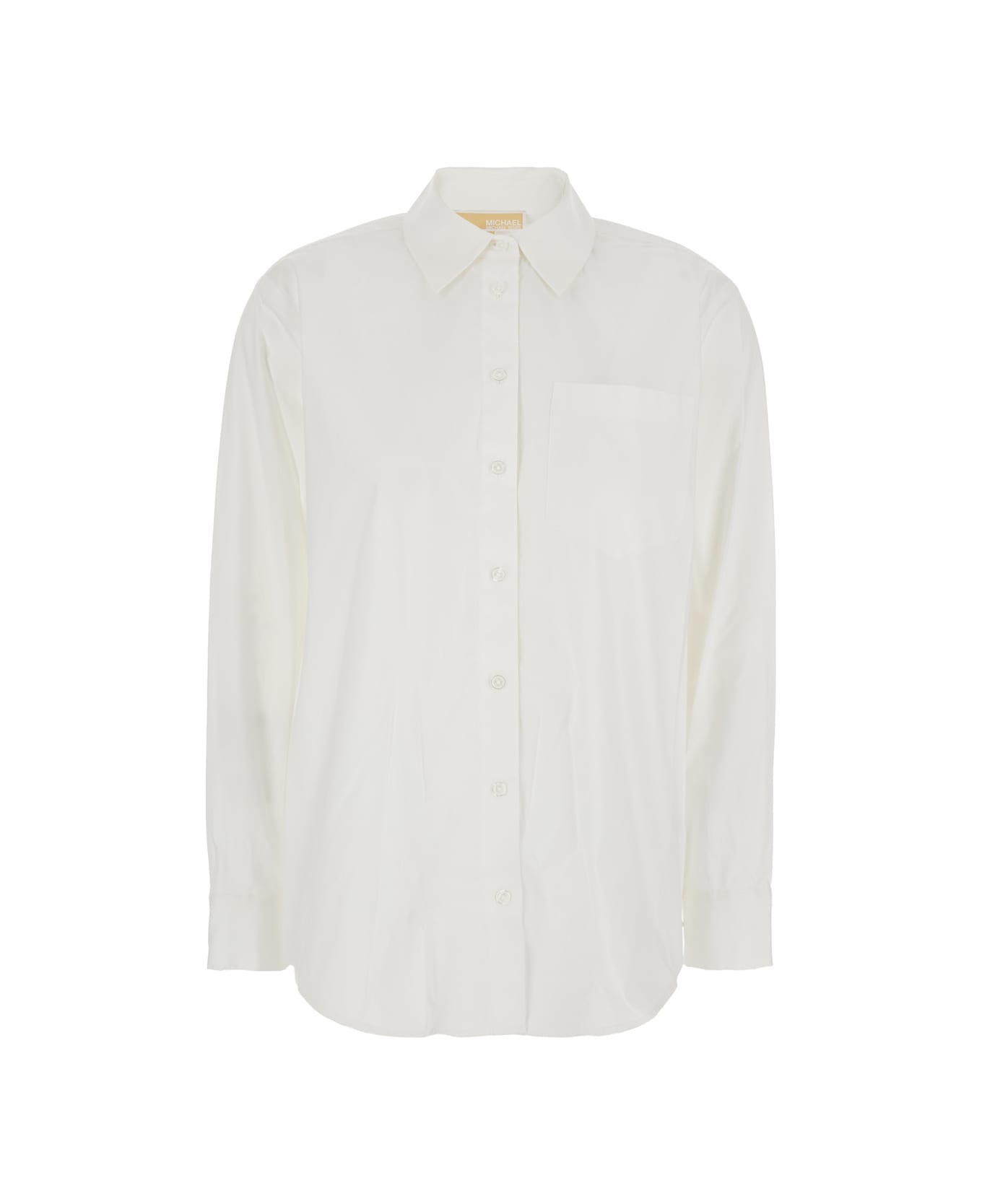 White Shirt With Button Down Collar And Logo Plaque On The Rear In Cotton Stretch Woman