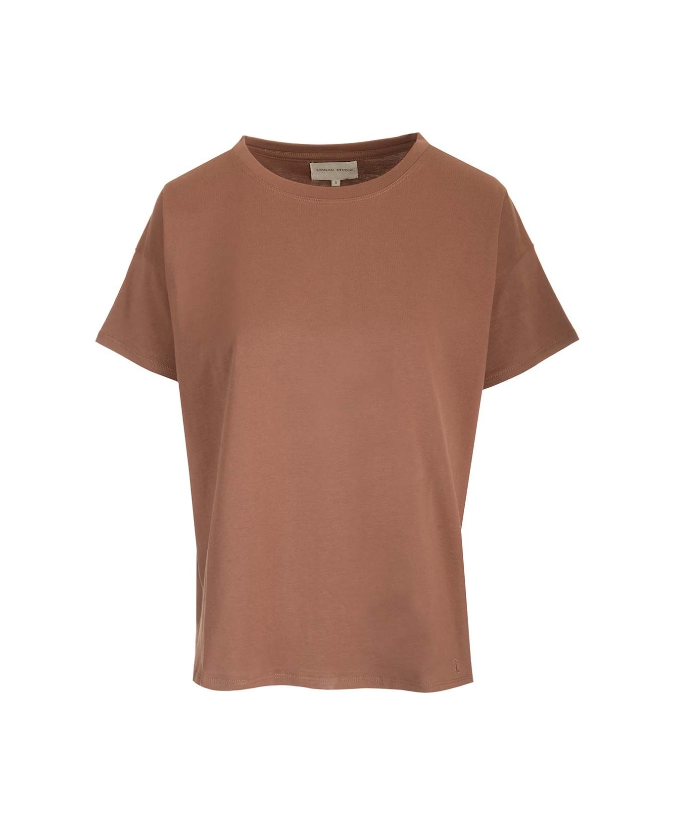 Boxy fit jersey T-shirt with embroidered logo from Lou Lou Studio.