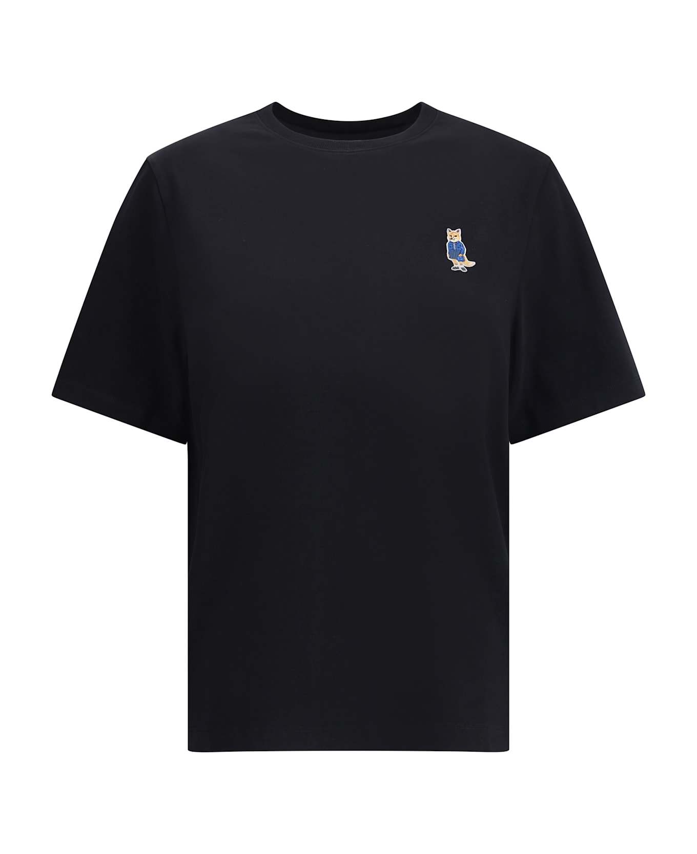 Maison kitsuné's dressed fox t-shirt is a casual garment with an iconic character. made with a ribbed crew neck, it features a patch on the front with the famous embroidered dressed fox, the brand's ironic and distinctive symbol.