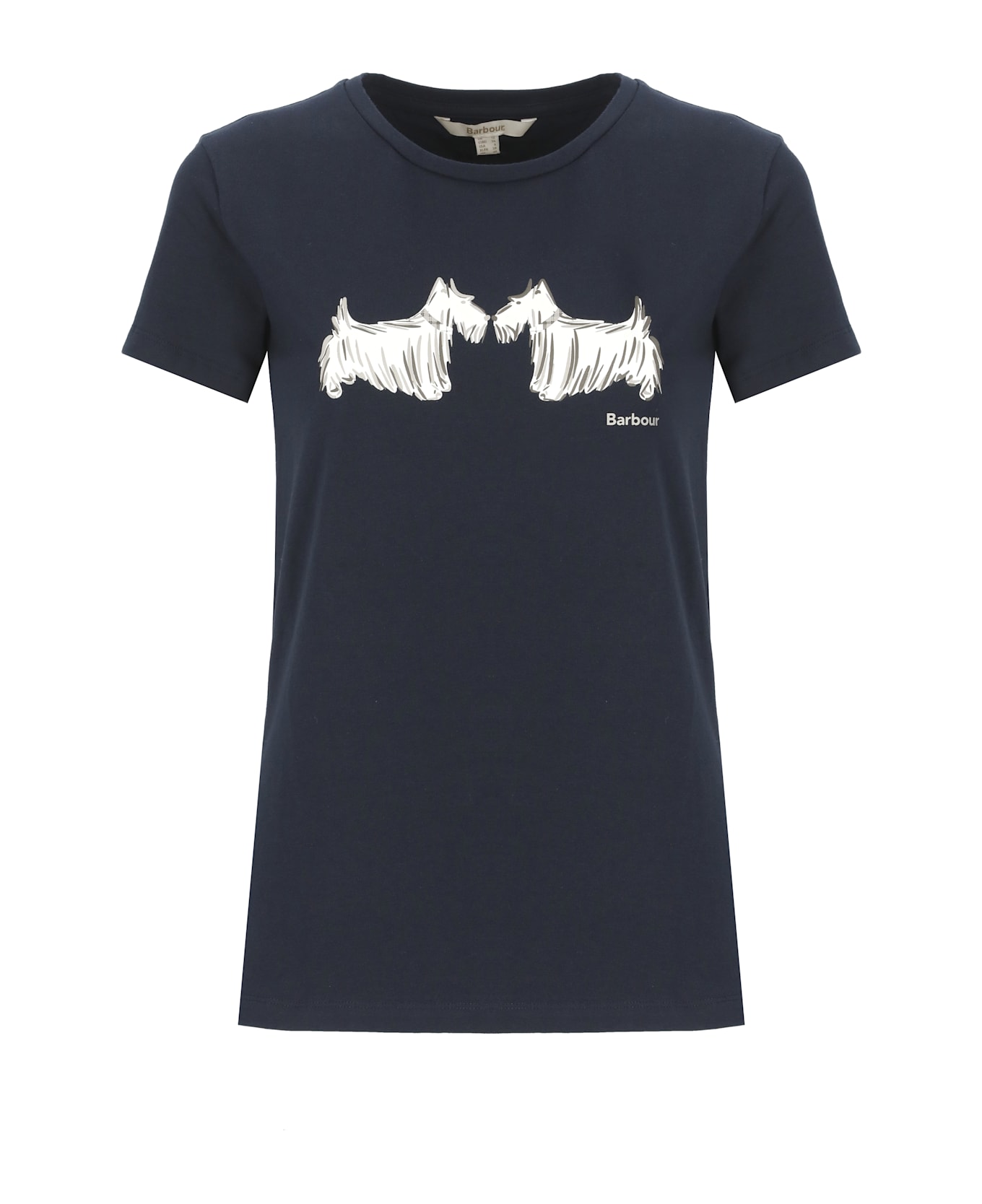- Blue Barbour cotton t-shirt for woman - Round neck - Short sleeves - Front contrasting color logoed print