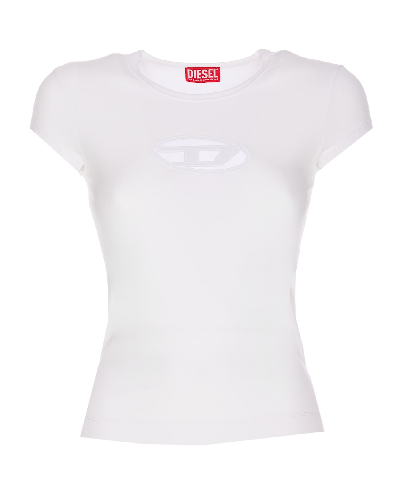 Diesel white T-Angie t-shirt, round neck, frontal tone on tone logo, short sleeves Composition: 94% Cotton, 6% Elastane