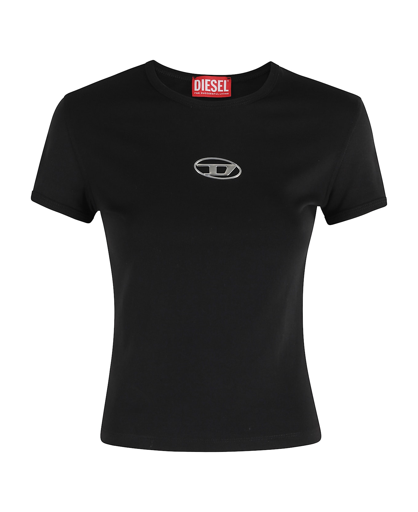 T-shirt - Diesel - Model t uncutie long od - Black color - Short sleeves - Round neckline - Silver logo central uncut