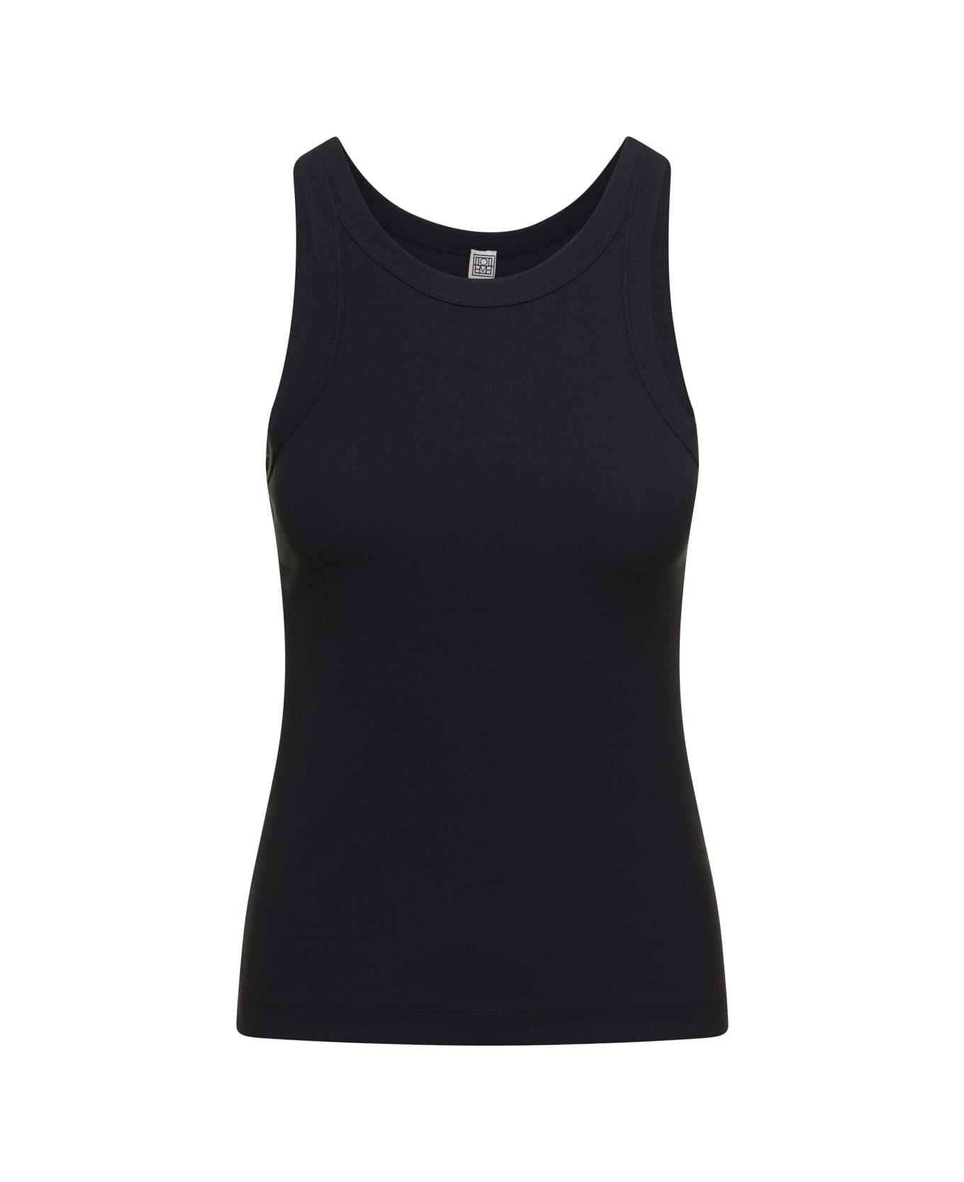 'espera' Black U Neck Rib Tank Top In Stretch Cotton Woman Toteme