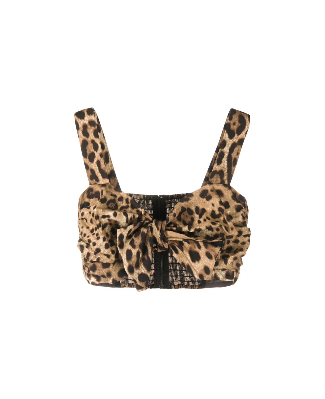 leopard brown cotton sweetheart neck front bow fastening leopard print back zip fastening