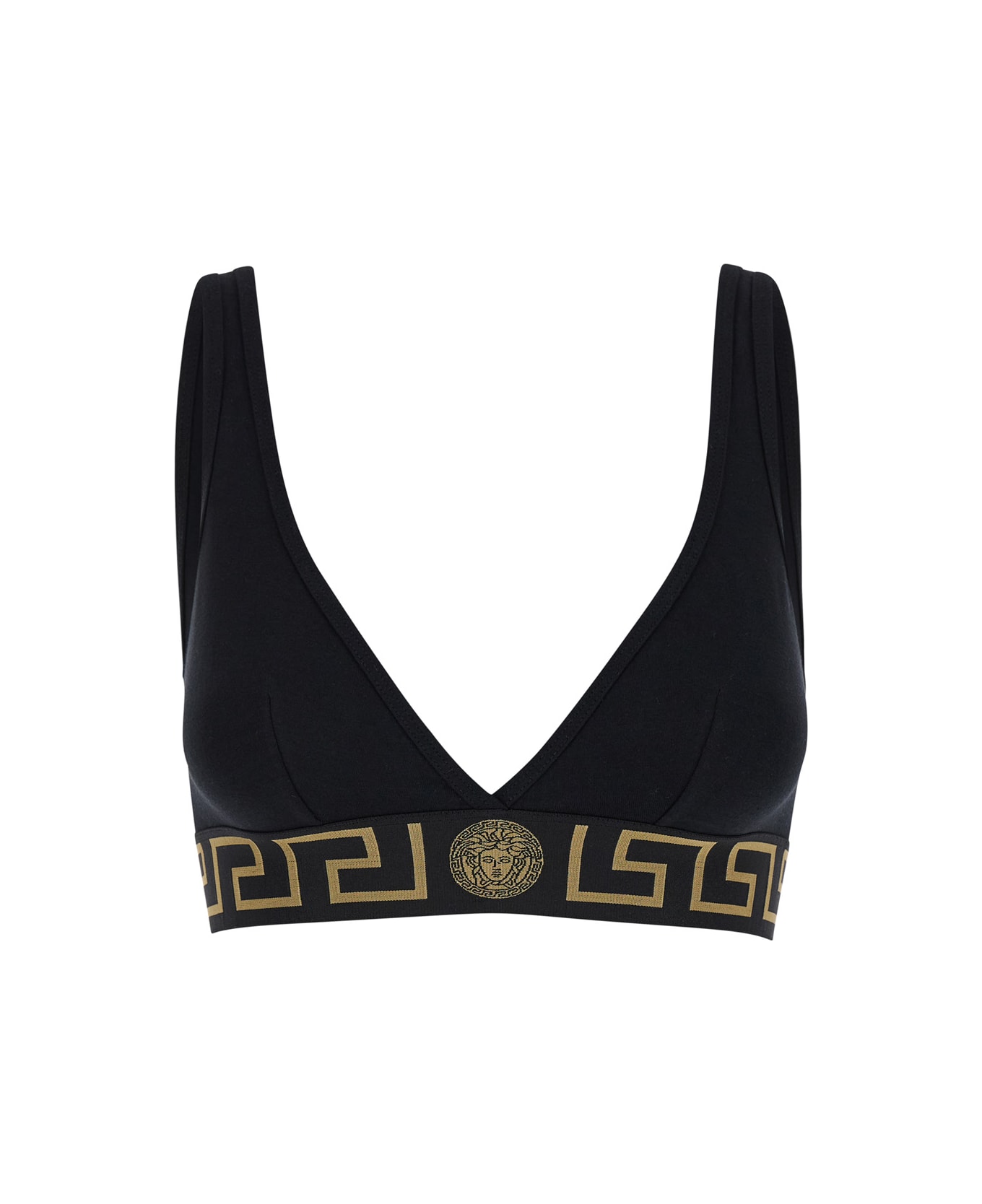 Black Sports Bra With V Neckline In Stretch Cotton Woman