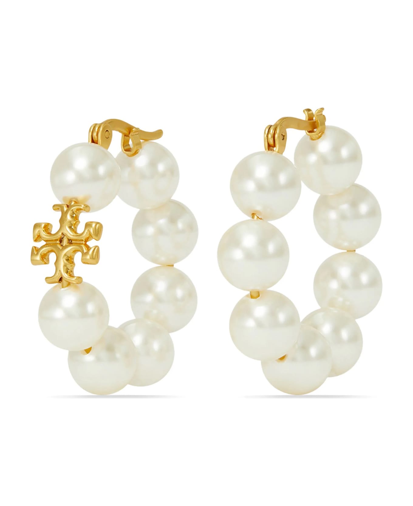 'Kira' earrings with pearls and an 18K gold-plated brass logo. ITEM CANNOT BE RETURNED